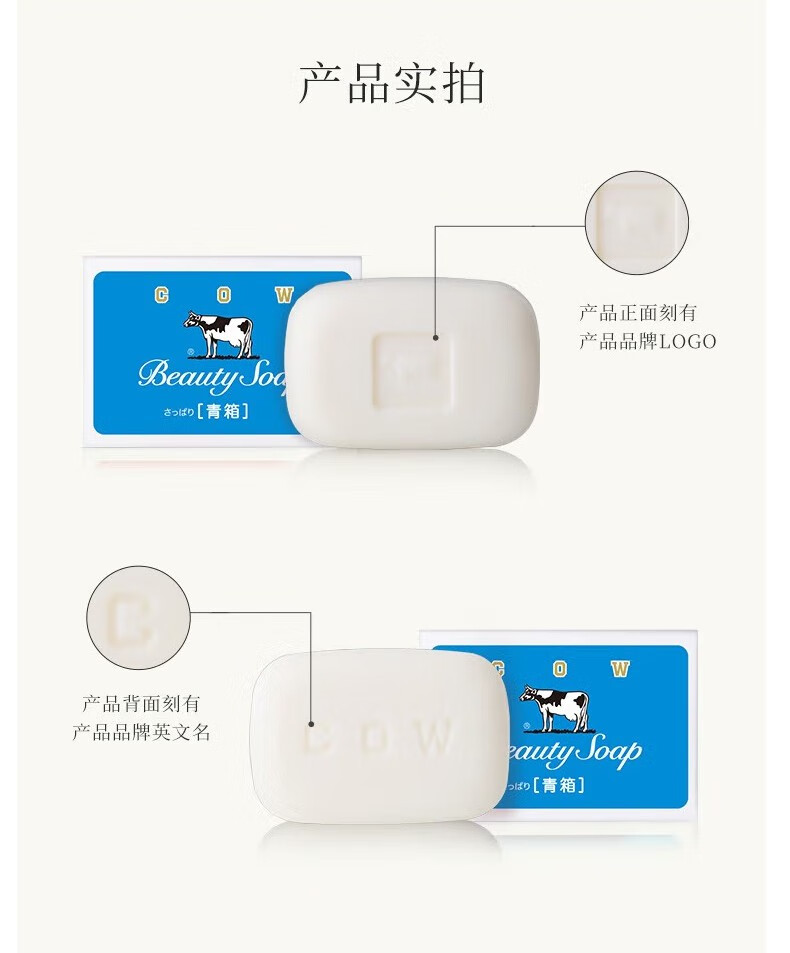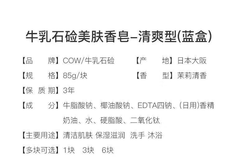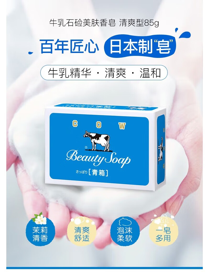 牛乳石硷日本进口牛牌COW美肤香皂清爽蓝色洗手洗澡沐浴皂洁肤皂牛奶皂 清爽型85g三块
