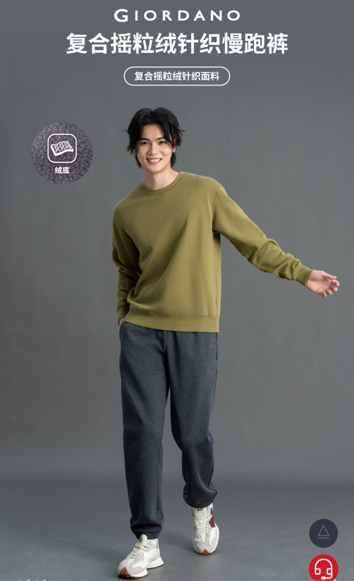 佐丹奴男装25年新款复合摇粒绒针织慢跑裤01115802