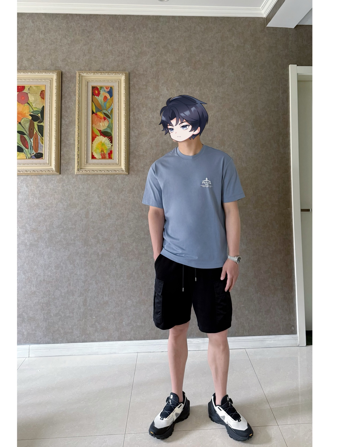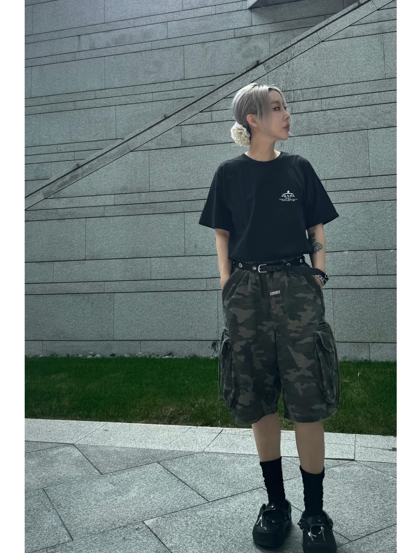 PLD新款徽章印花圆领短袖T 复古做旧印花标识