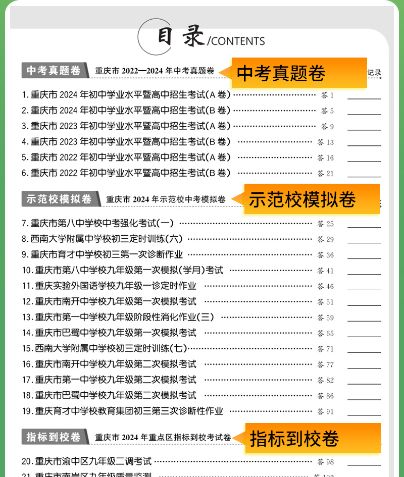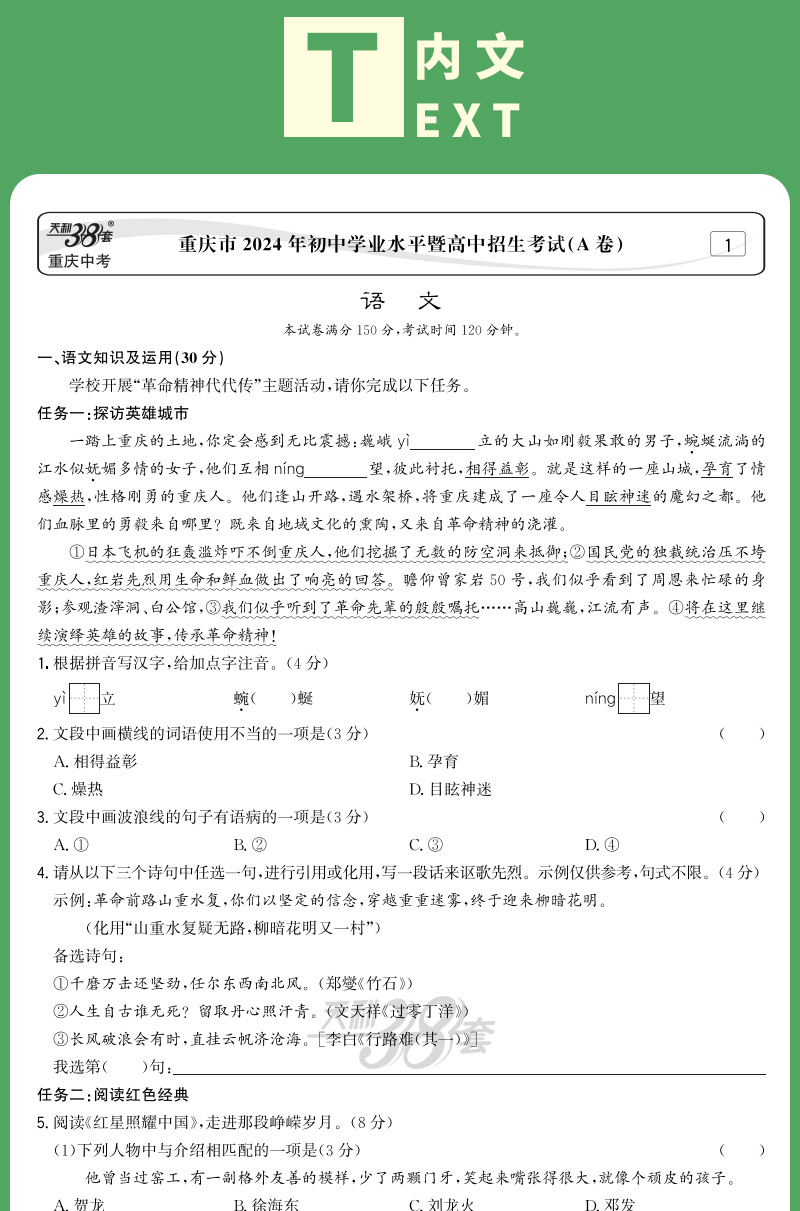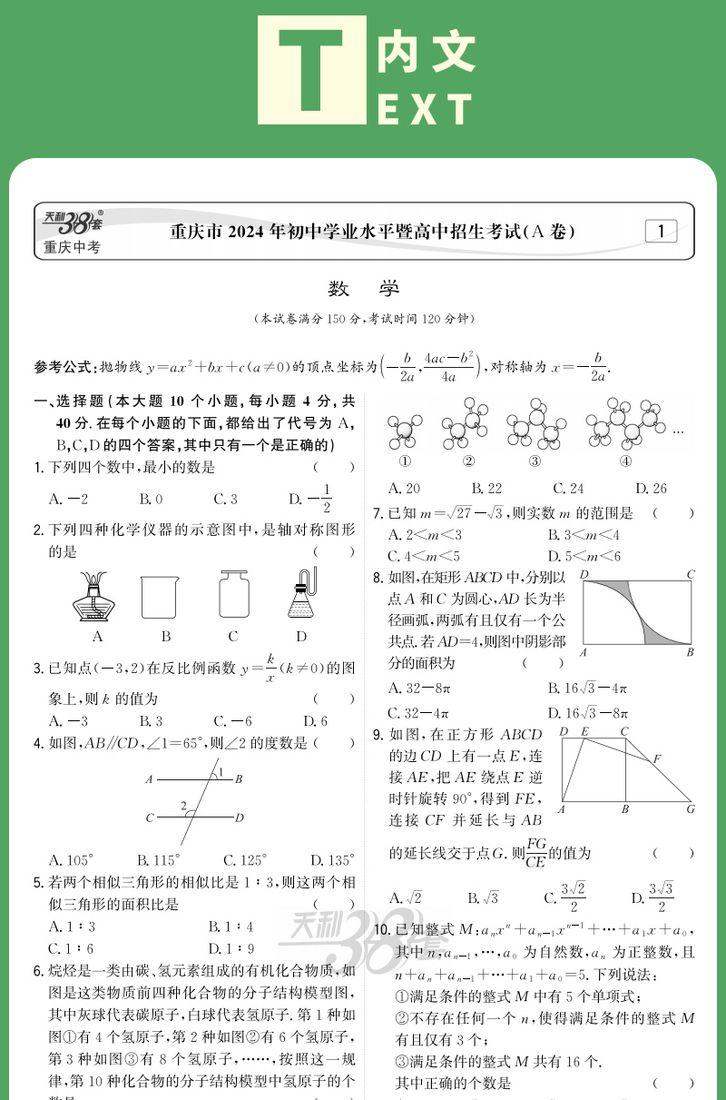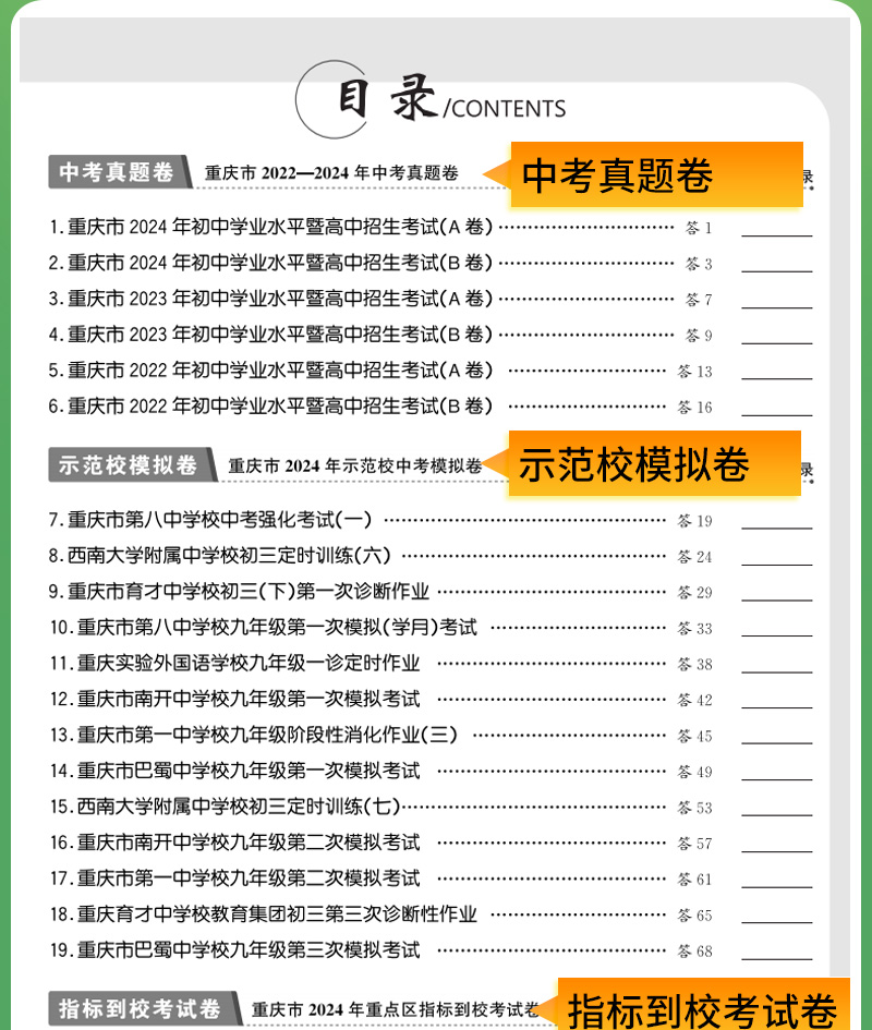 天利38套 2025重庆中考试题精选 语文 数学 英语 物理 化学 历史 道德与法治