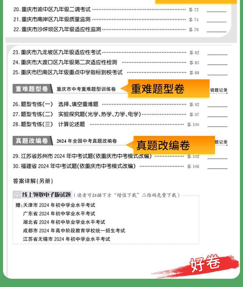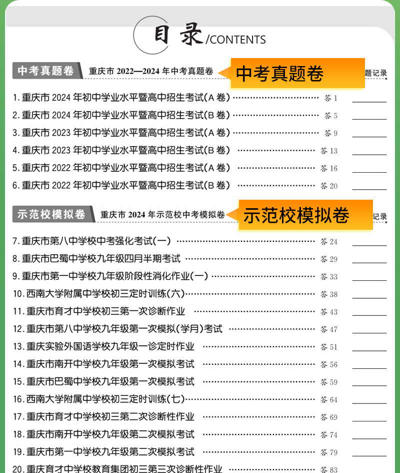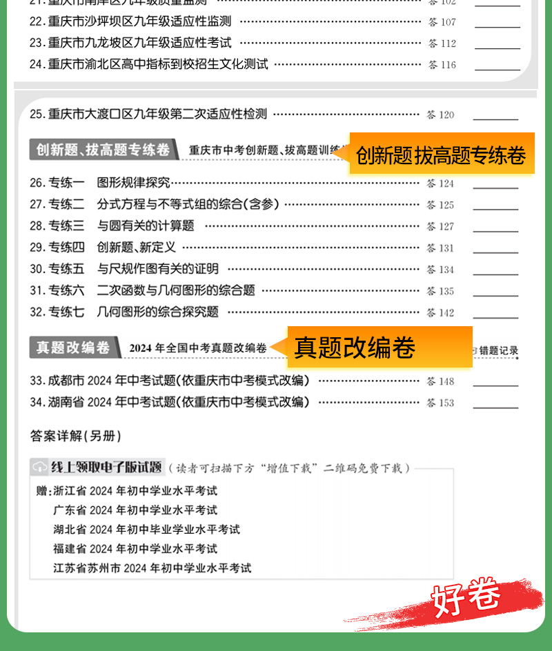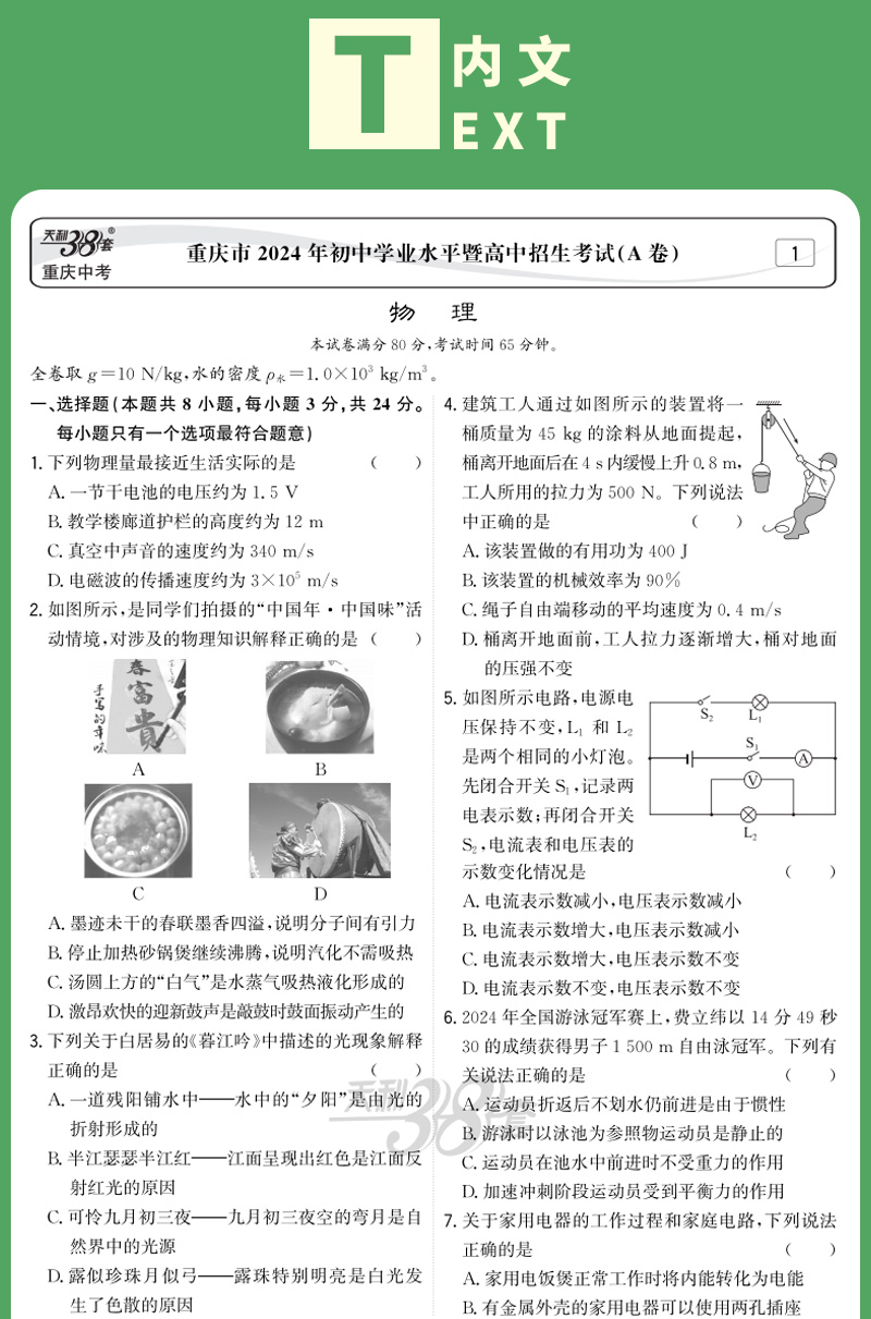 天利38套 2025重庆中考试题精选 语文 数学 英语 物理 化学 历史 道德与法治