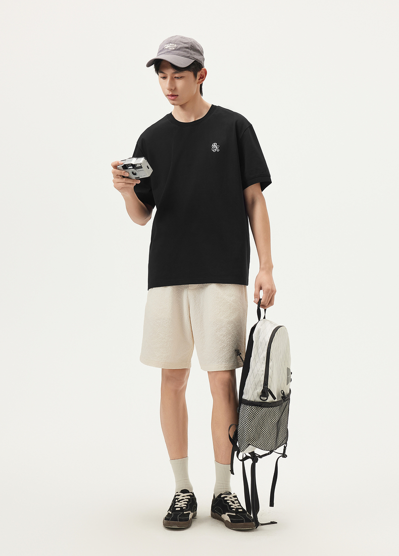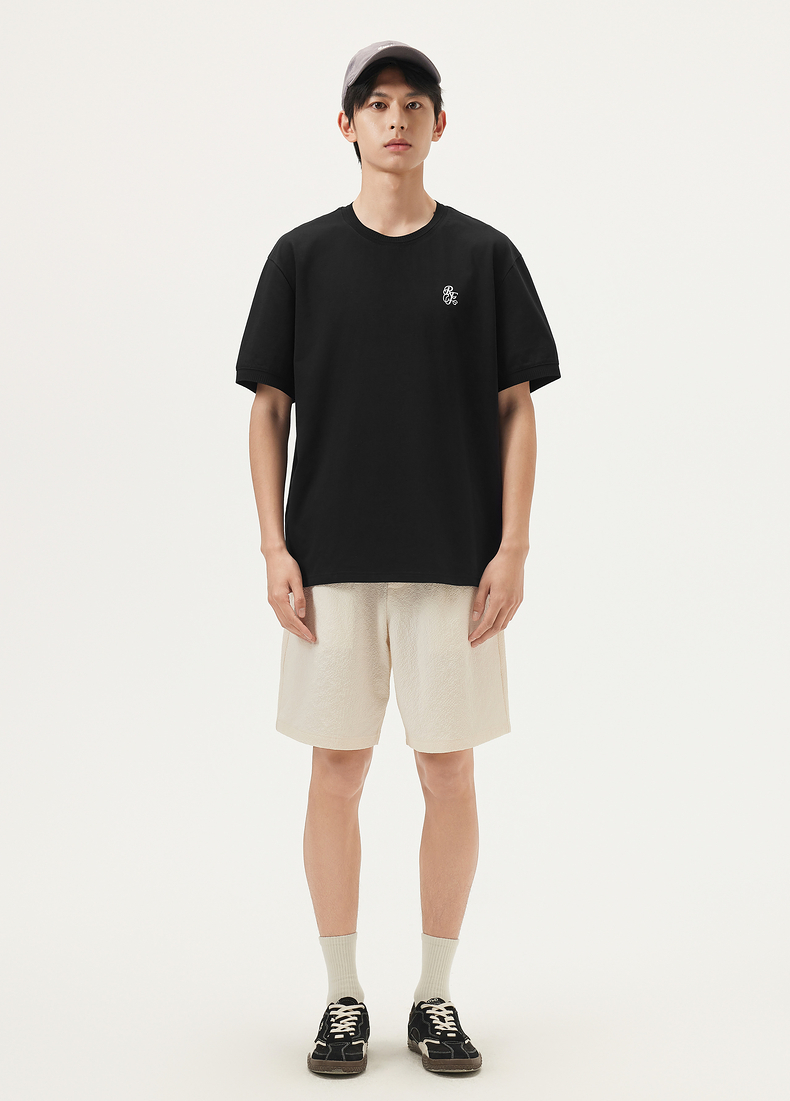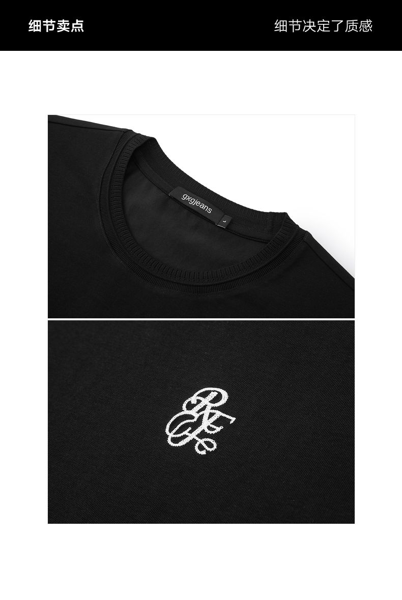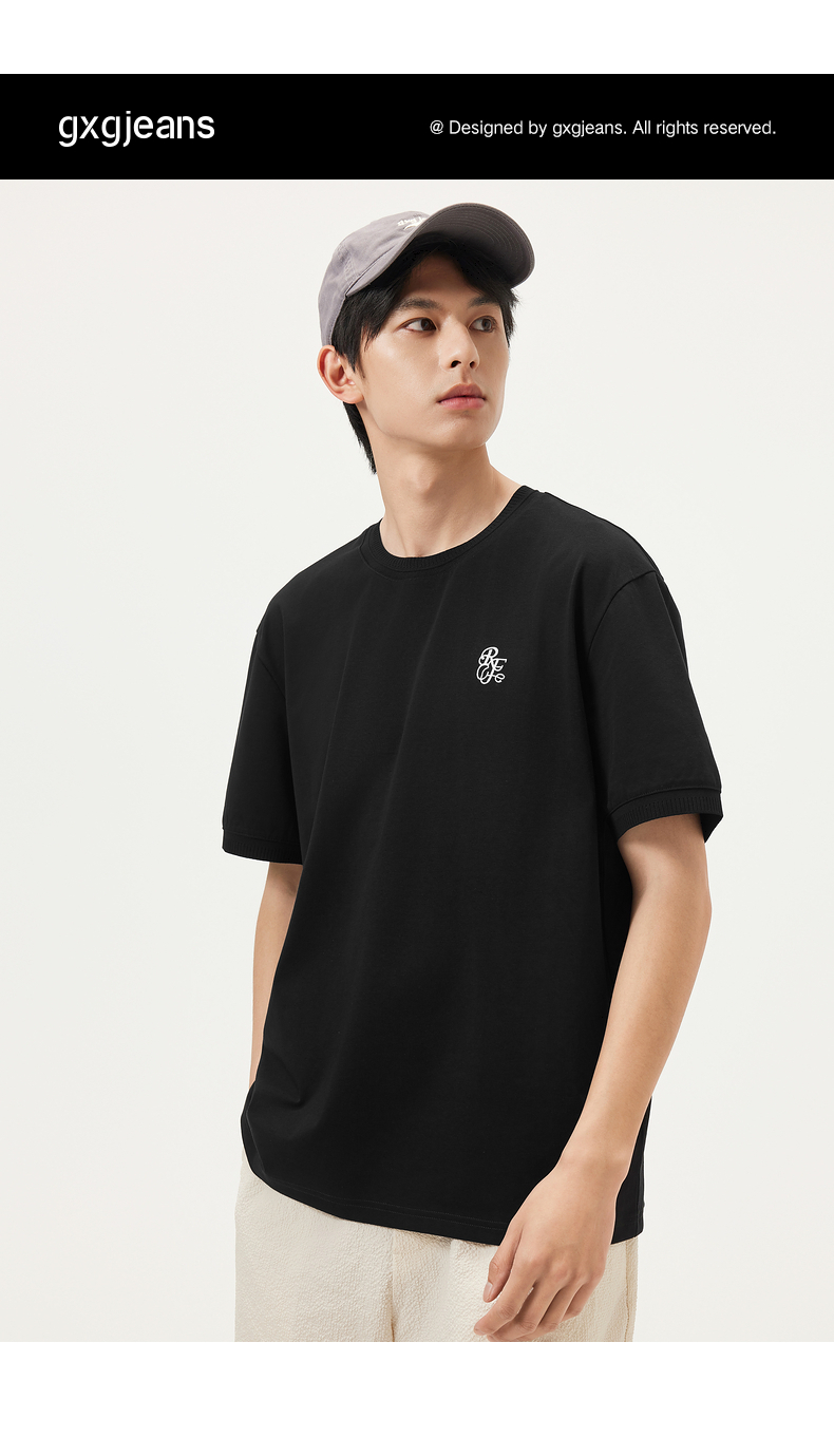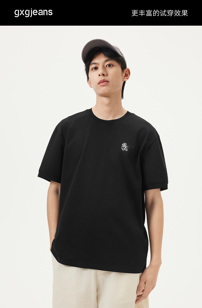 gxg.jeans男装 黑色潮流刺绣基础宽松圆领短袖T恤男 25年夏热卖