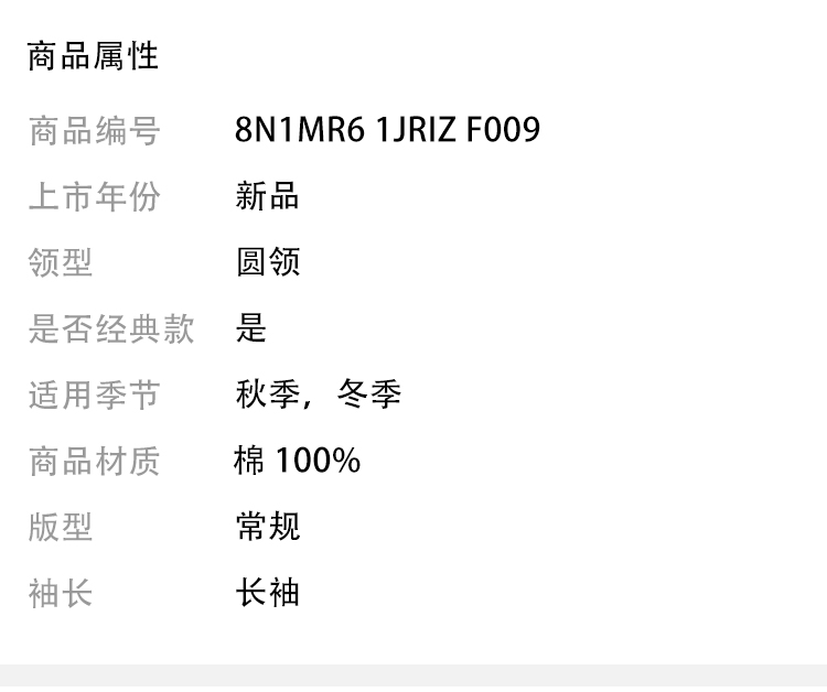 ARMANI 阿玛尼 男士经典鹰标印花卫衣 黑色 8N1MR6 1JRIZ F009
