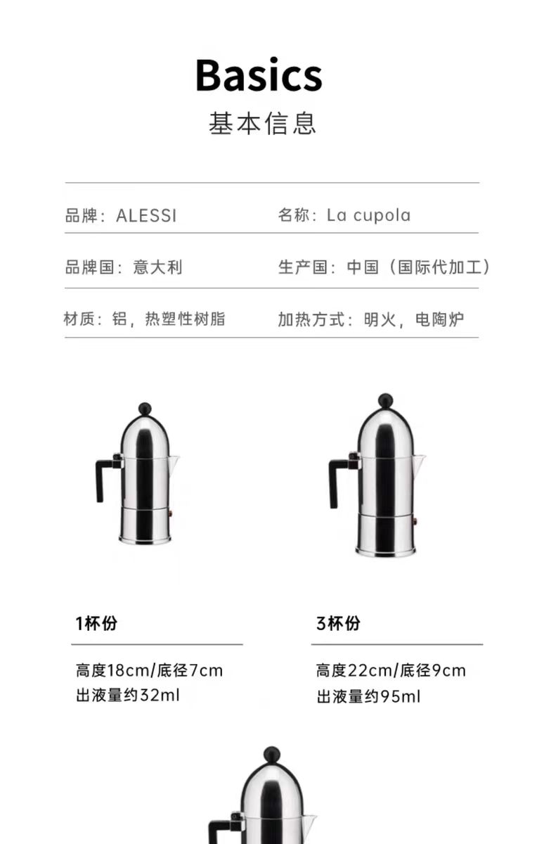 ALESSI La Cupola摩卡壶意式浓缩咖啡煮壶单阀铝制