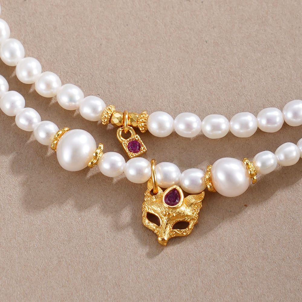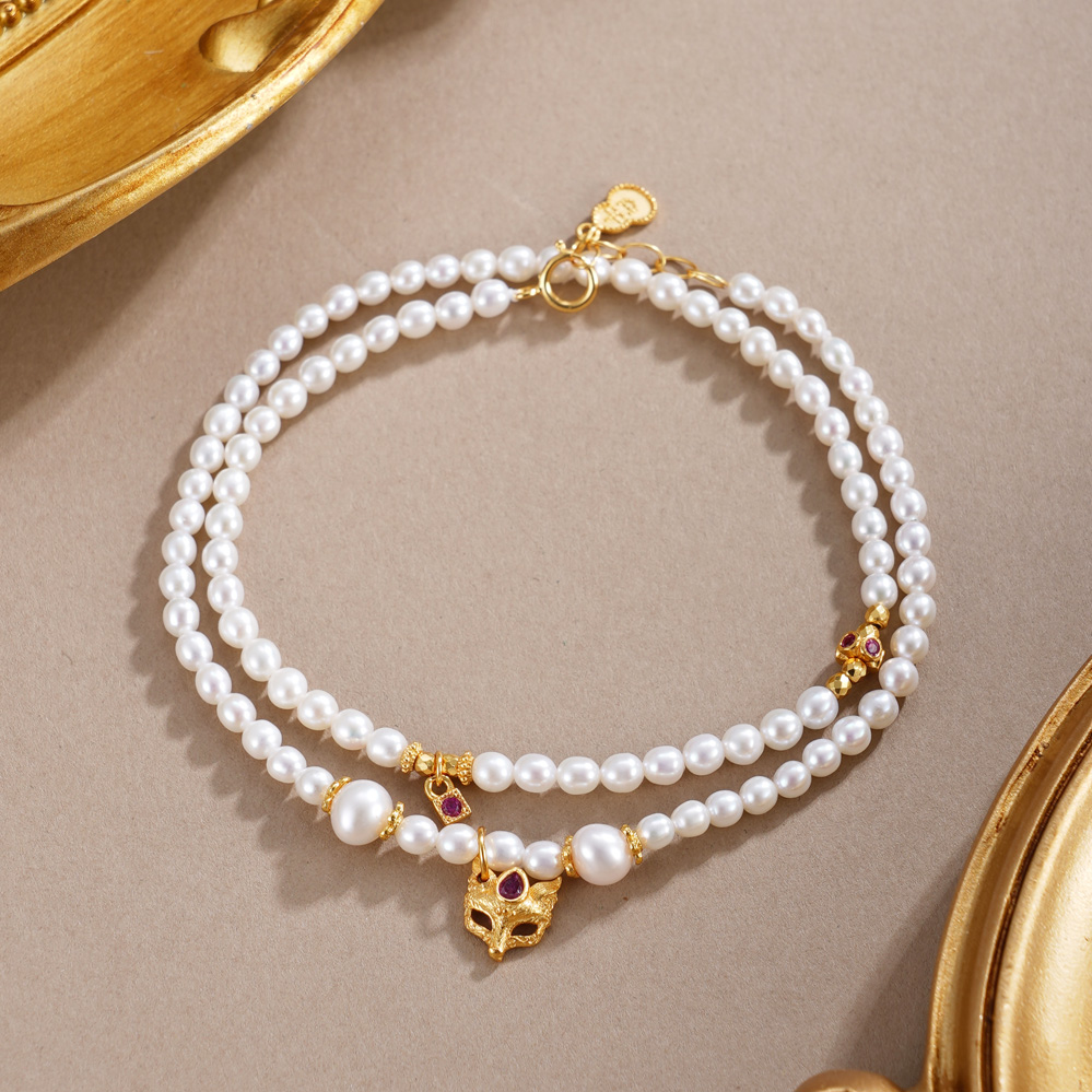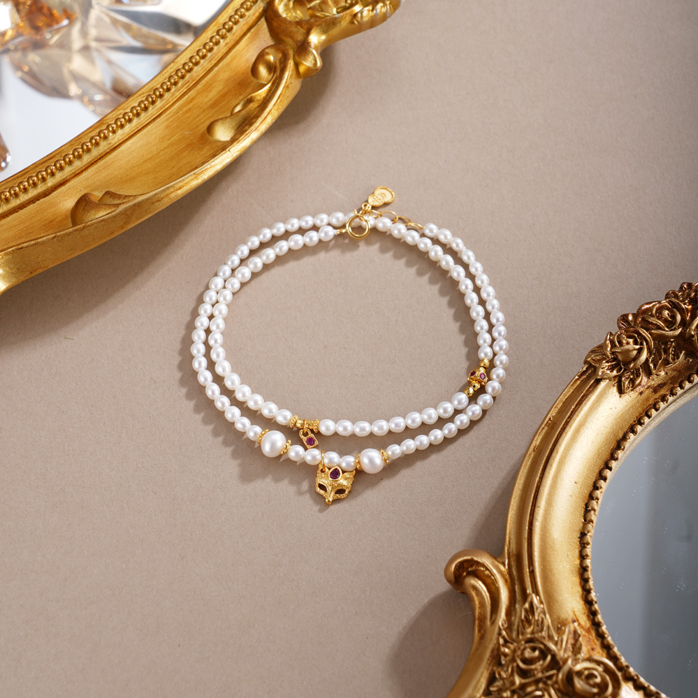 子佩集【蝴蝶鱼你】银S925珍珠惜王妃手链【QNS0021-7】3mm珠镀金狐狸葫芦2601