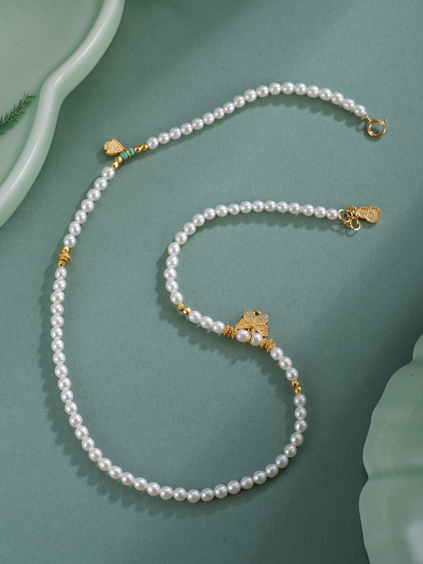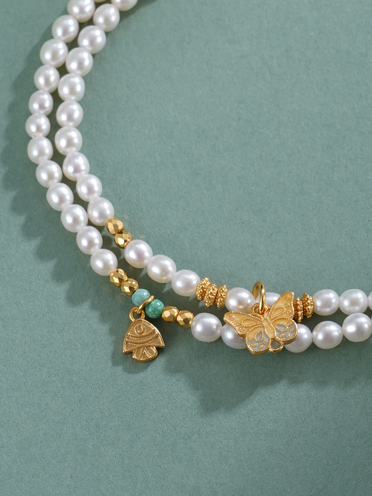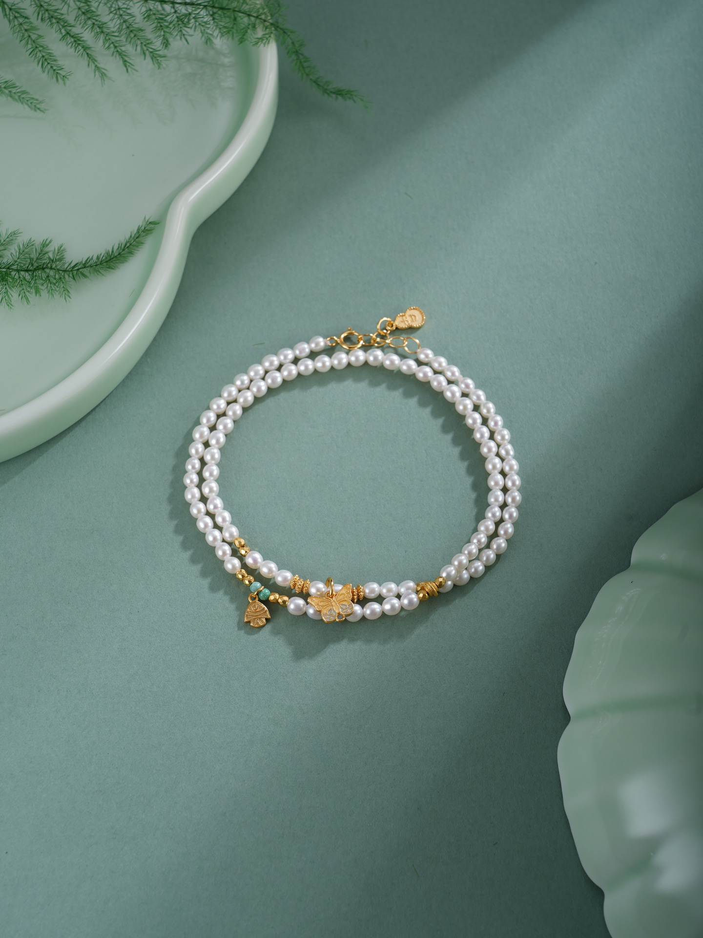 子佩集【蝴蝶鱼你】银S925珍珠惜王妃手链【QNS0021-7】3mm珠镀金狐狸葫芦2601