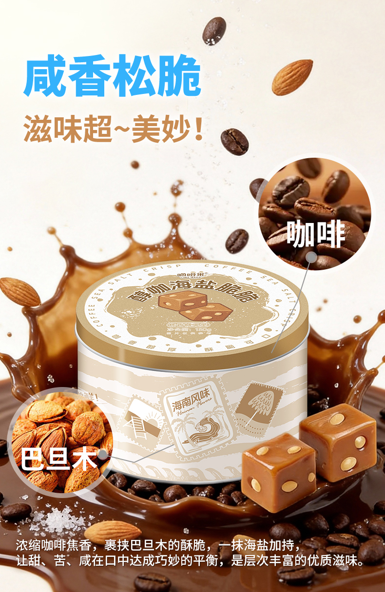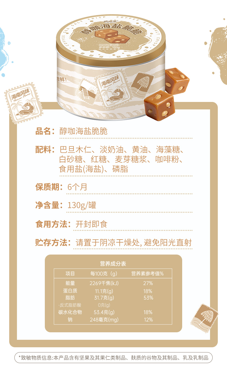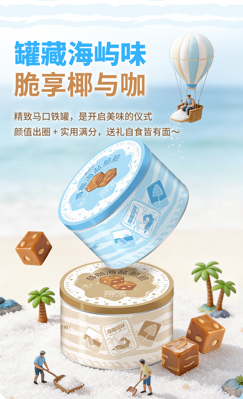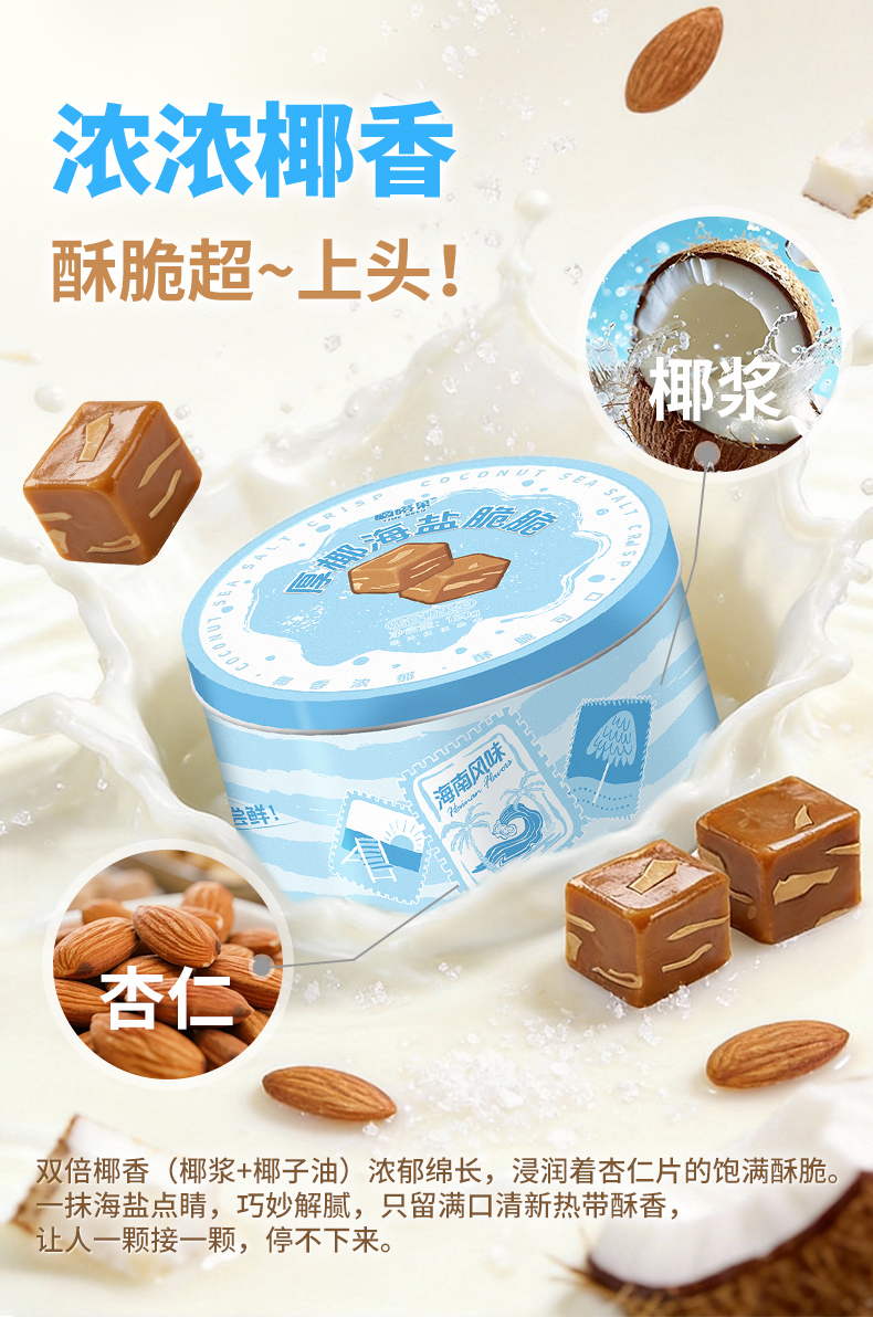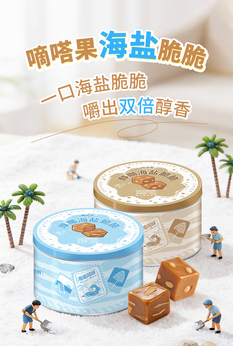 嘀嗒果厚椰海盐脆脆糖椰子硬糖喜糖年货办公室零食罐装伴手礼130g