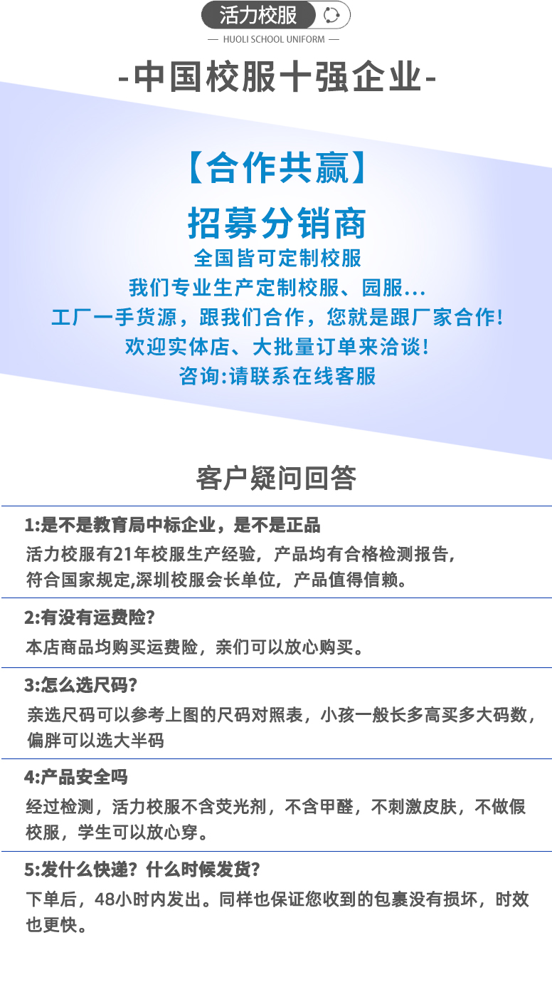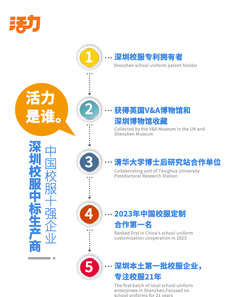 活力校服由深圳市中南活力实业股份有限公司创建的品牌,深圳二十一年老品牌,教育局中标企业;主营深圳校服、广州校服、东莞校服、佛山校服、肇庆校服、江苏校服、鞋袜、学生床上用品等学生课桌椅一站式教育领域产品