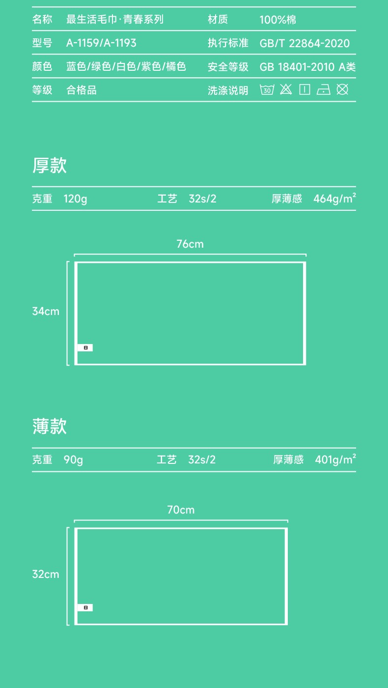 【分仓直发包邮】最生活青春系列毛巾3条装(颜色随机)