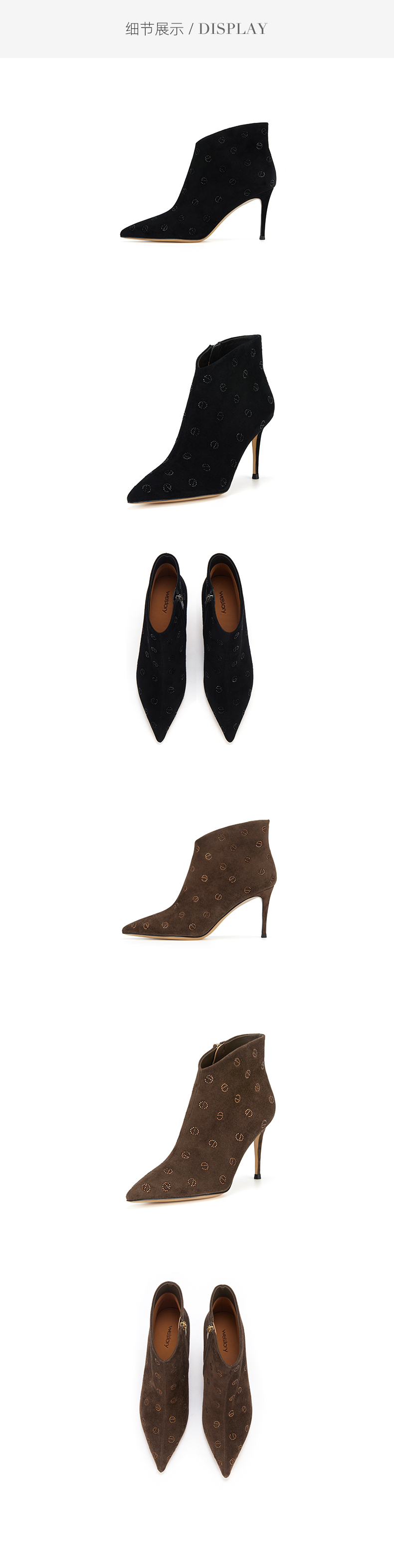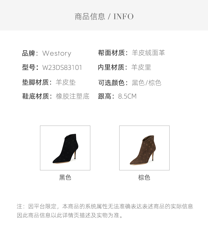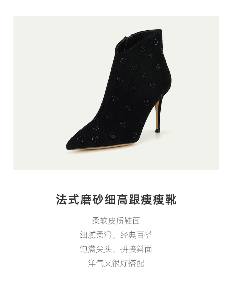 westory2023秋季新品法式磨砂细高跟及踝瘦瘦靴潮流女神气质W23DS83101