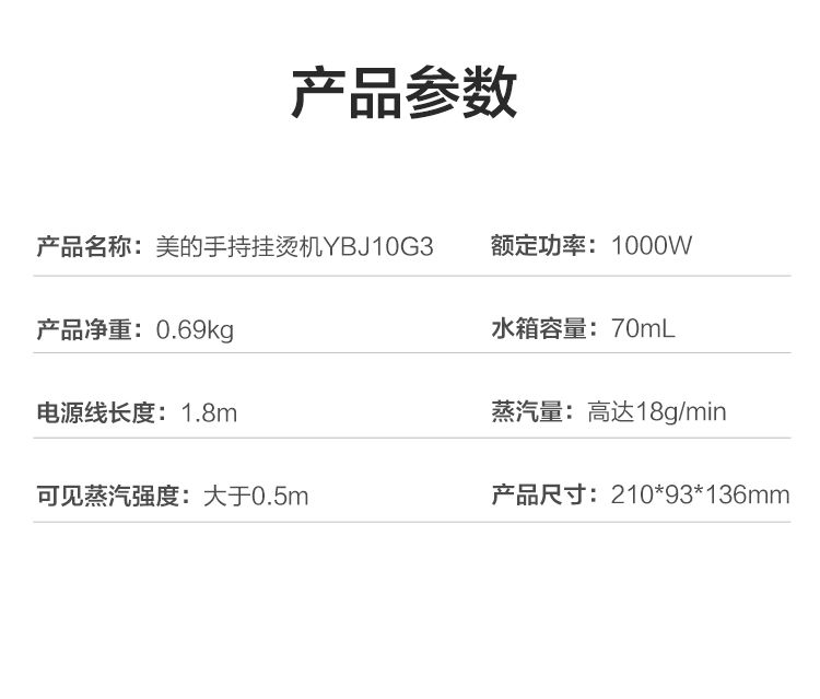 【分仓直发包邮】美的手持挂烫机YBJ10G3
