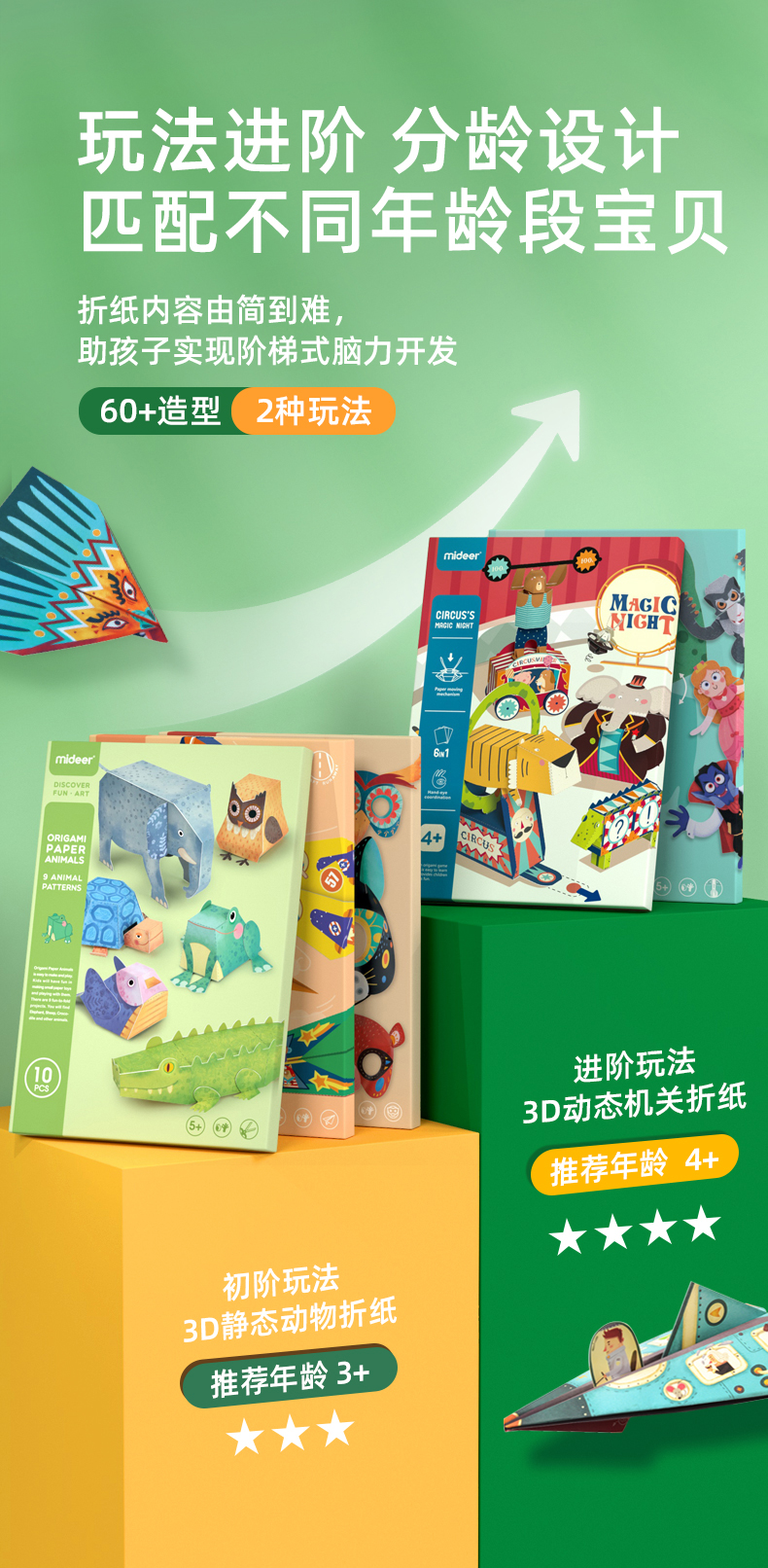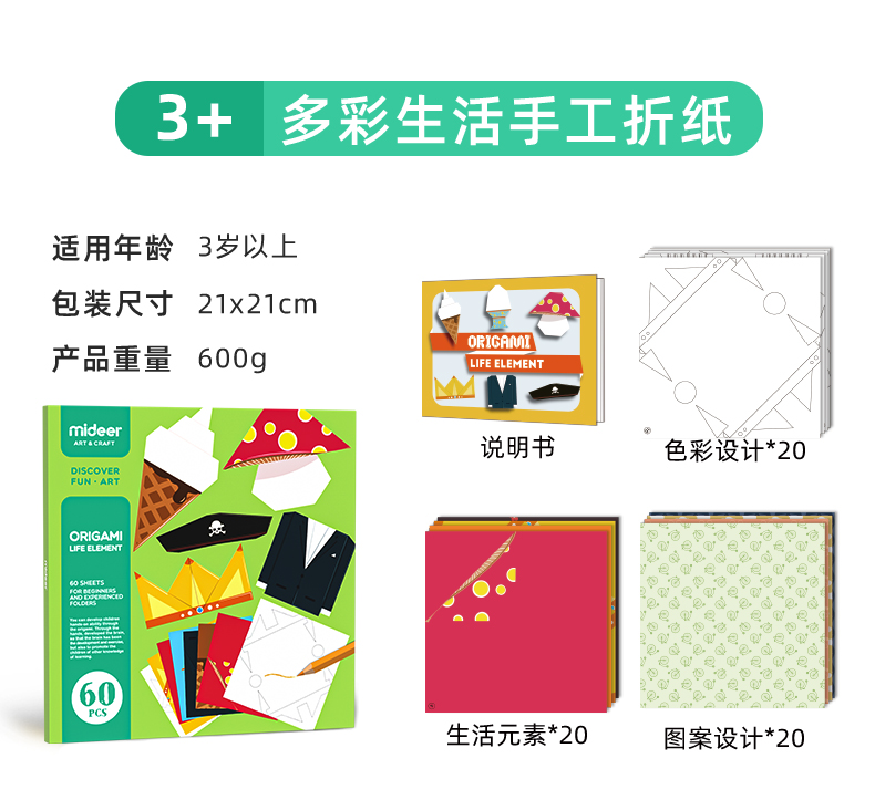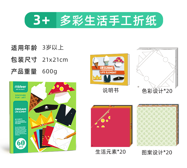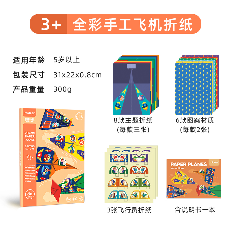 mideer弥鹿儿童手工折纸书彩色立体创意玩具幼儿园纸飞3-8岁