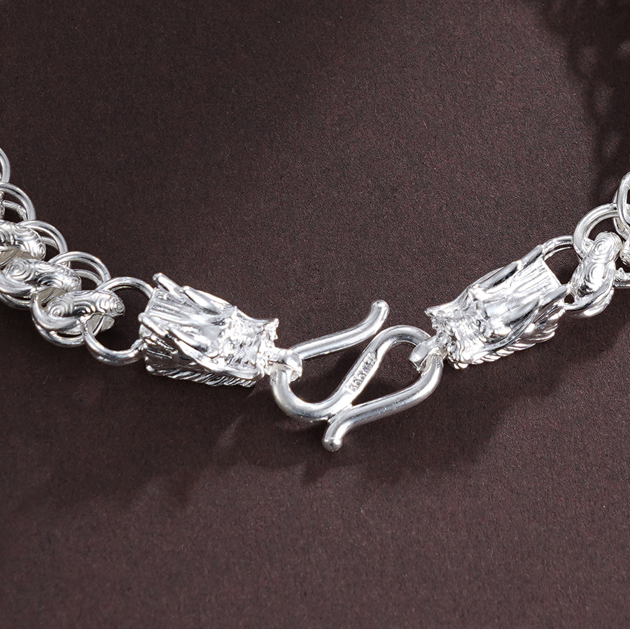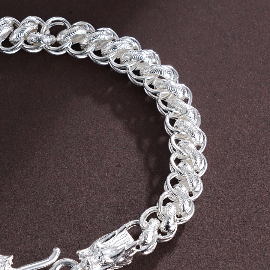 【寓意】:龙吟雪霁系列,链身环环相扣,龙头糅合刚与柔气息,通体抛光打磨,如龙破雪而出,寓意着新的希望和开始。
