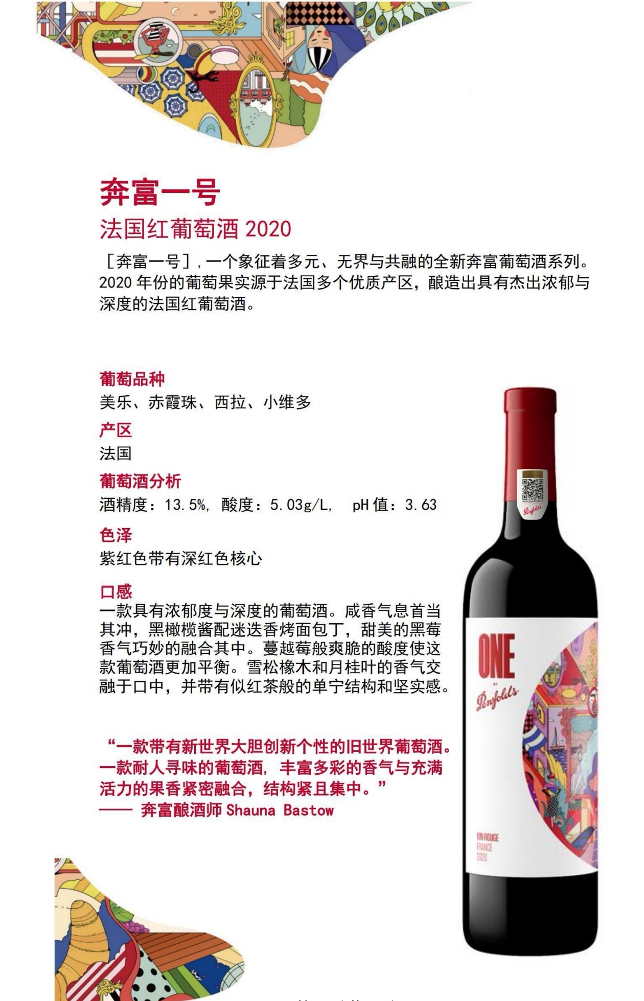 Penfolds 华晨宇同款 奔富一号法国干红葡萄酒750ml 多规格