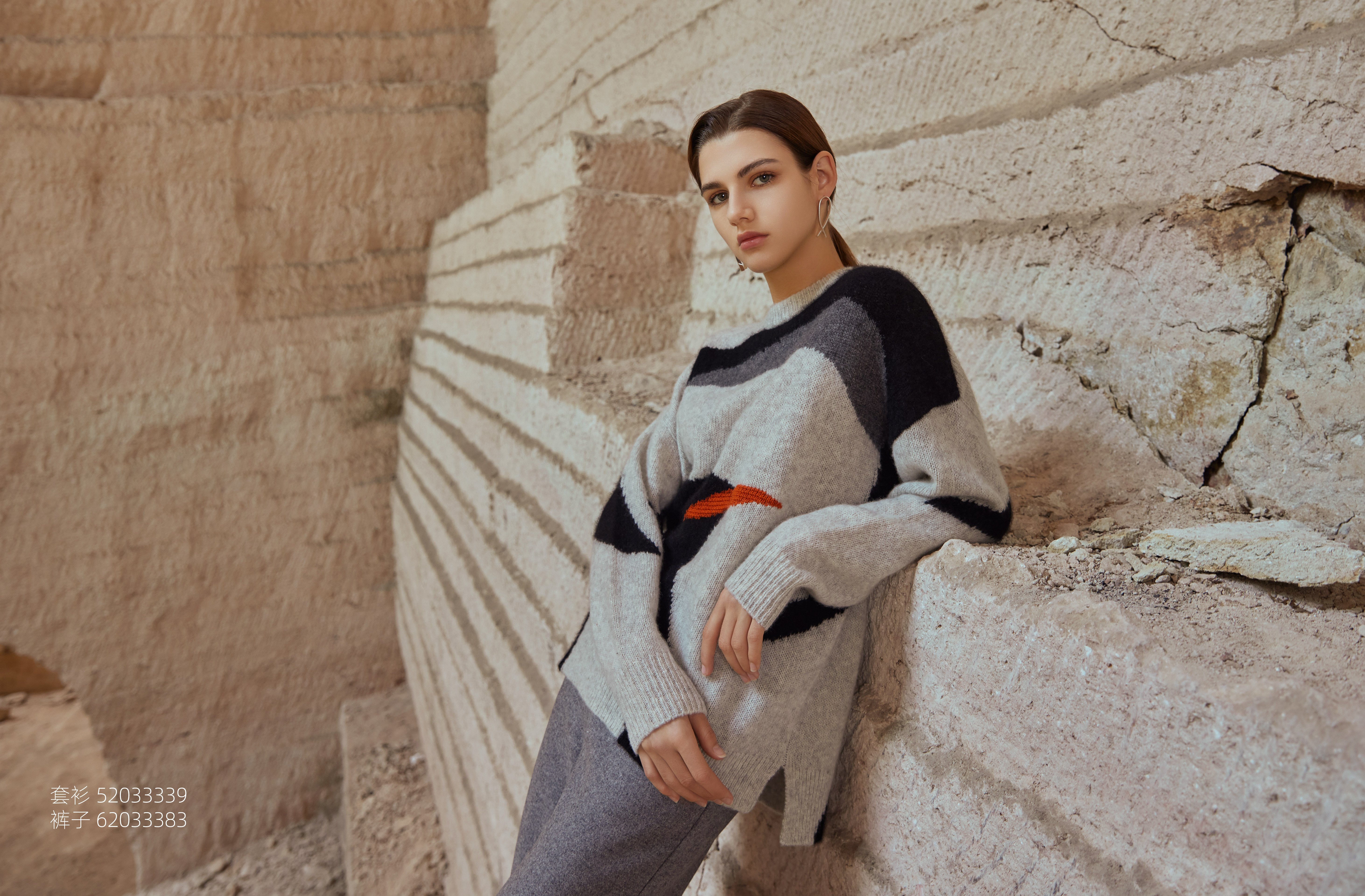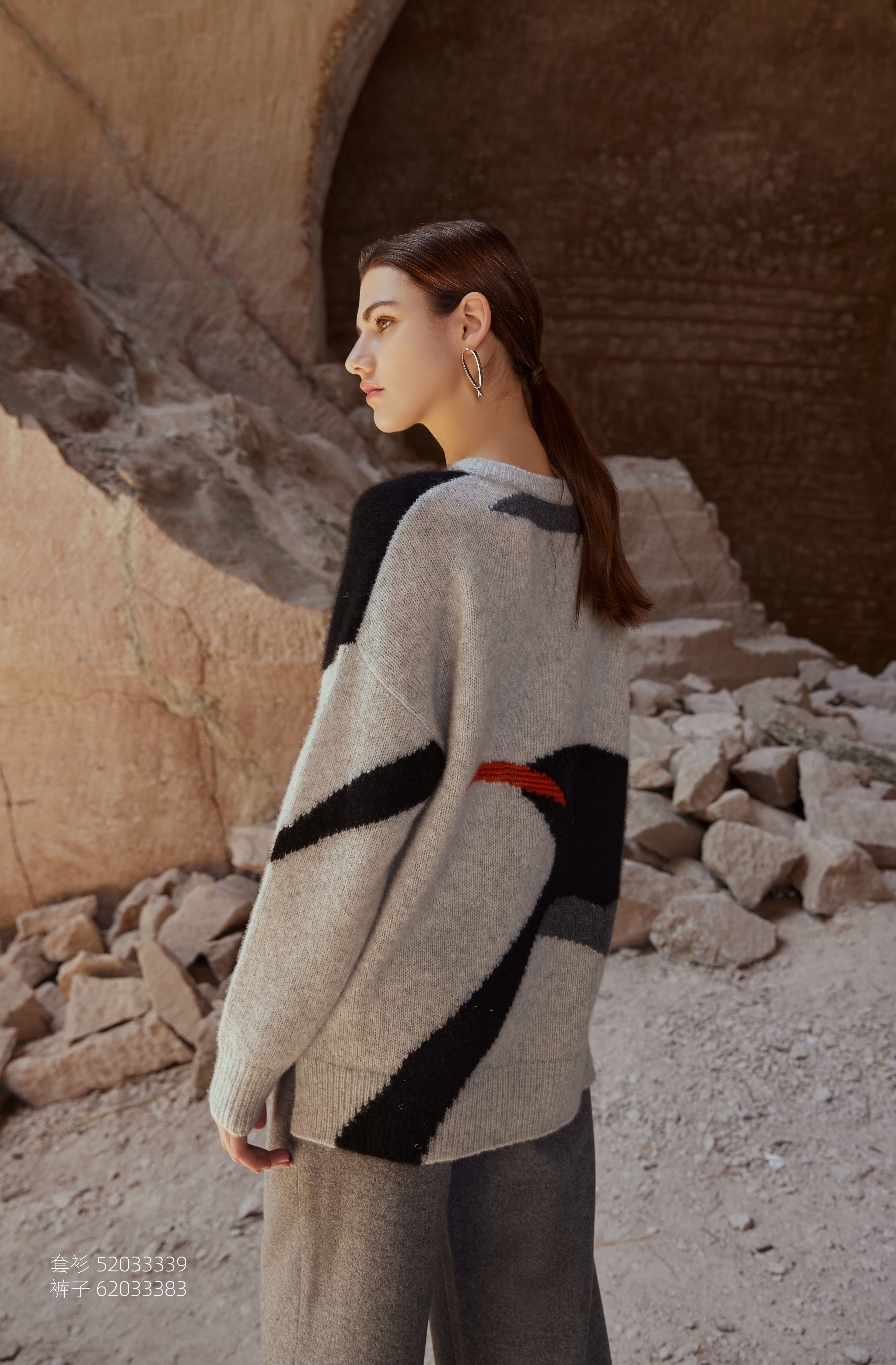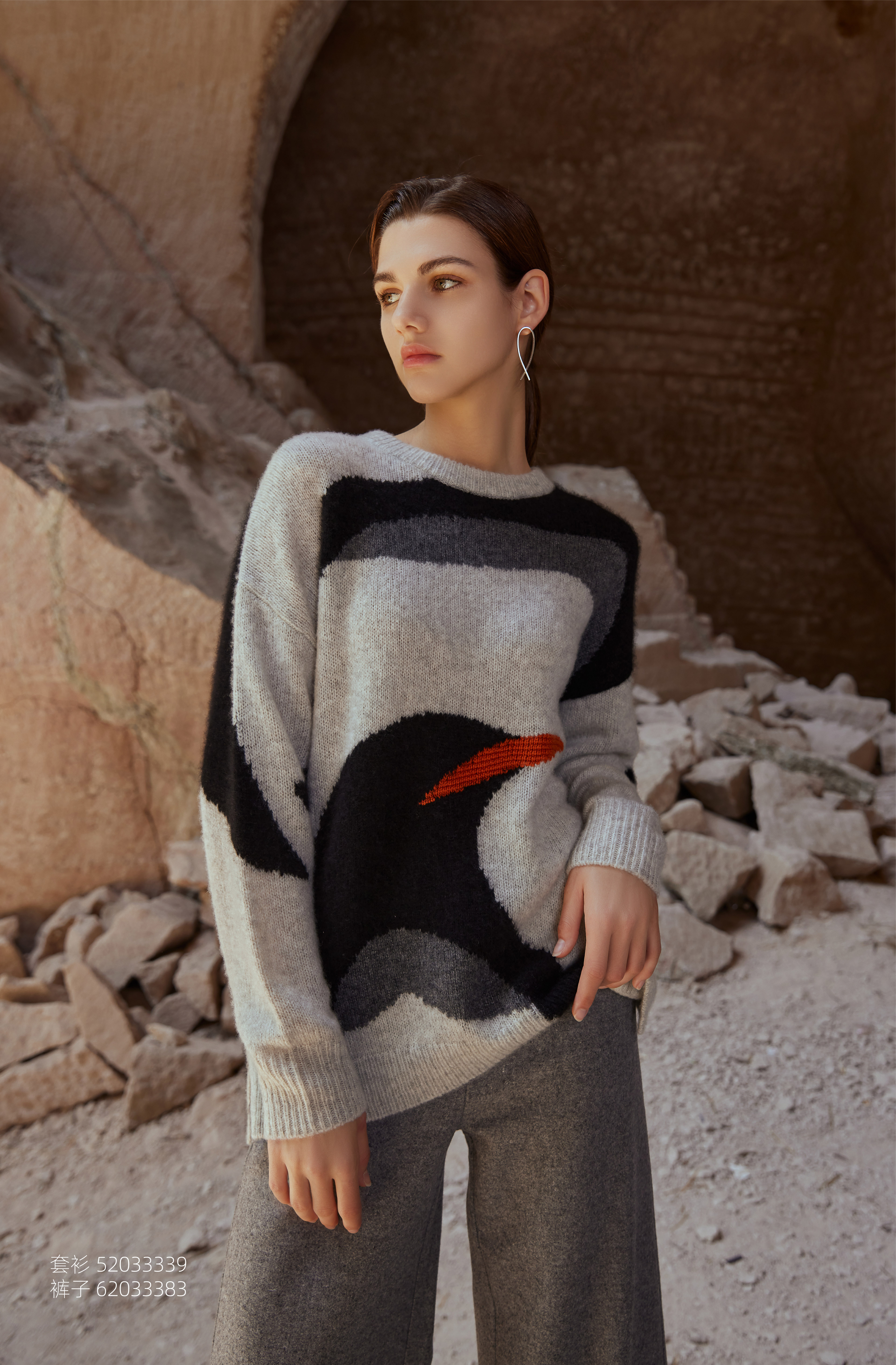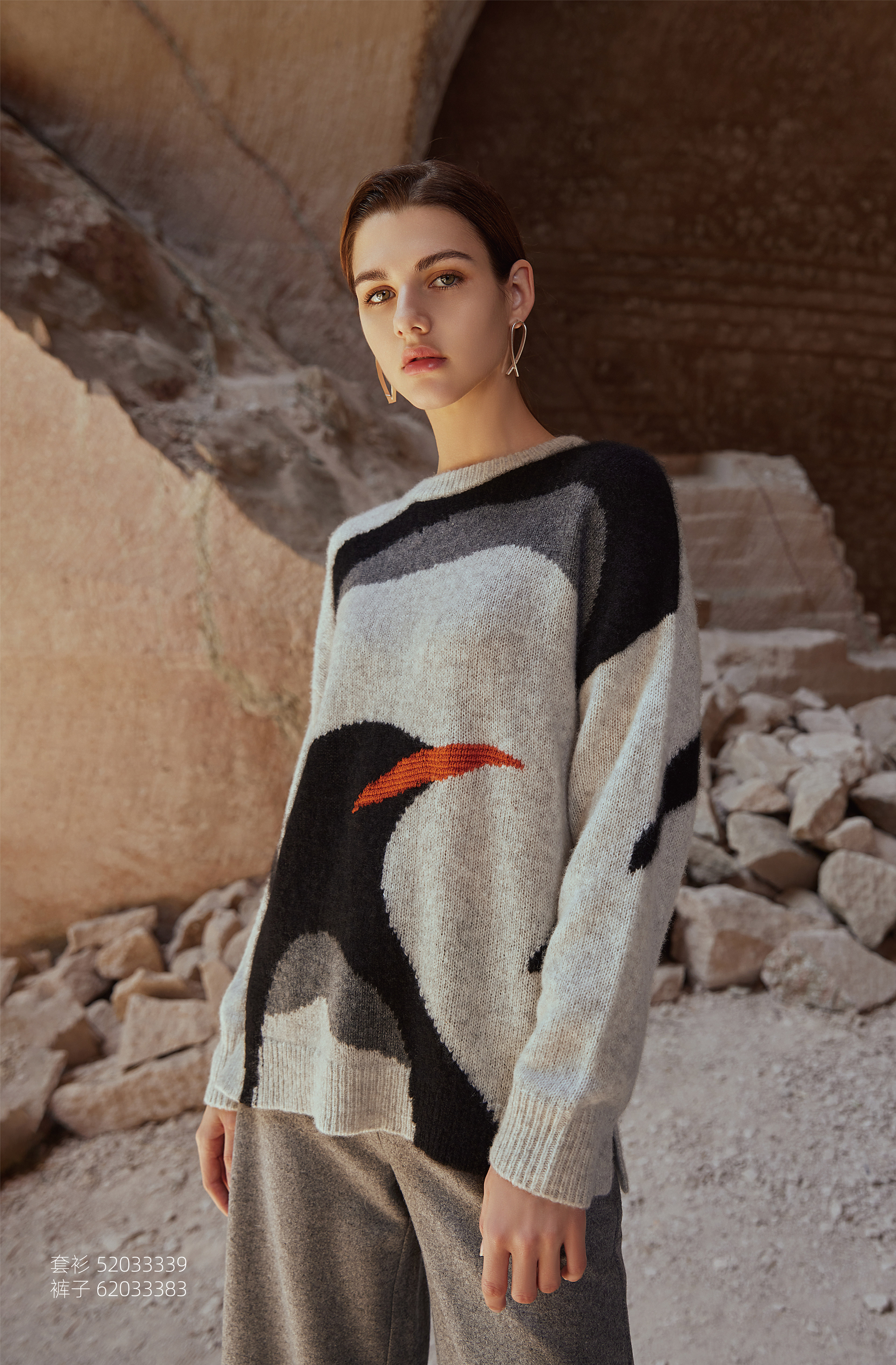 【卡通图案宽松落肩袖羊绒衫】羊绒世家23年秋冬新品羊绒衫企鹅图案保暖毛衣