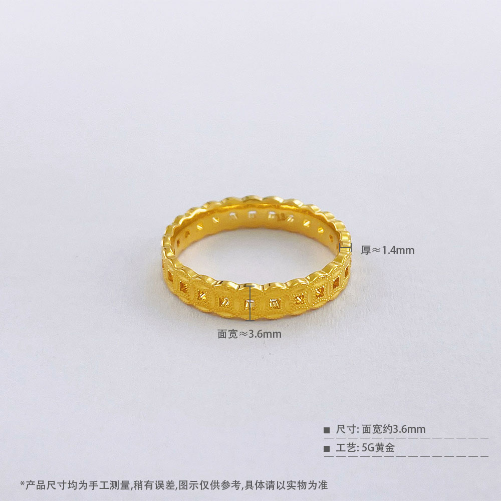 【限时克减150元】足金999 #招财进宝 5G黄金镂空财源广进招财铜钱造型戒指固口圈戒(AG5GJZ00295)(预售产品下单后不退款不退货不换货不补差价)