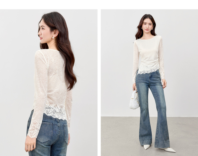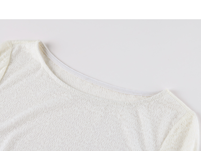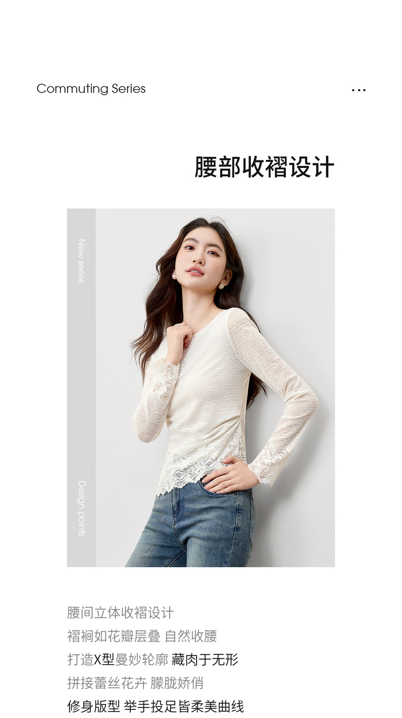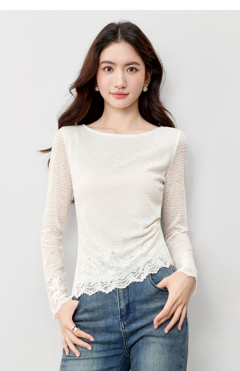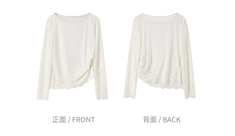 【内购】【腰部收褶】休闲X型一字领腰部收褶收腰修身蕾丝花卉上衣-153SA2374
