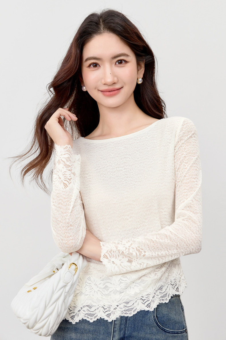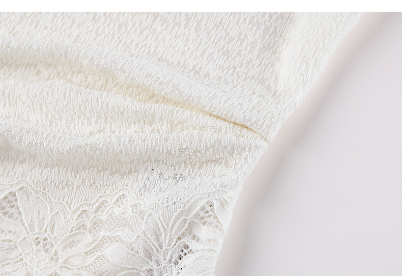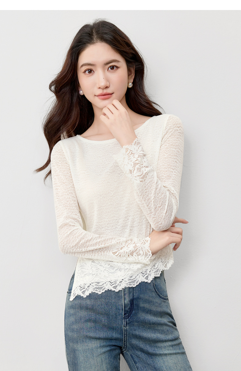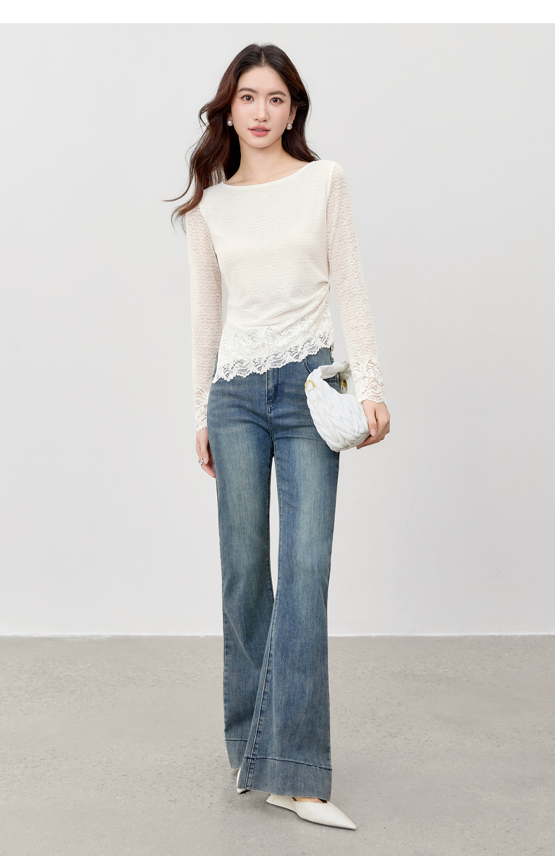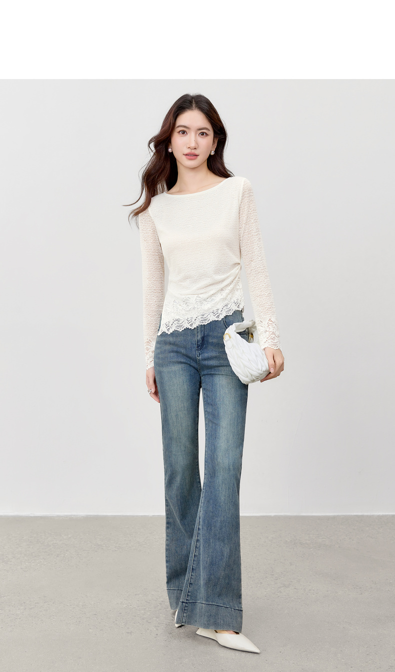【内购】【腰部收褶】休闲X型一字领腰部收褶收腰修身蕾丝花卉上衣-153SA2374