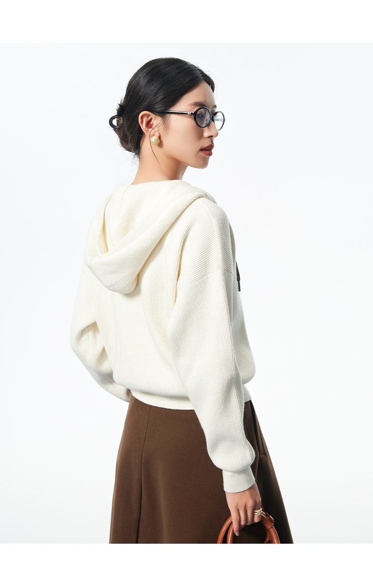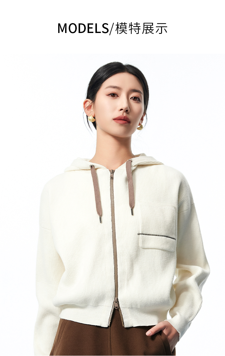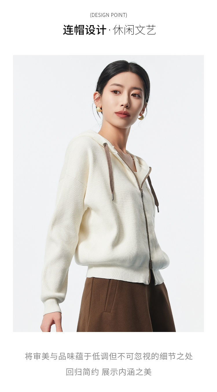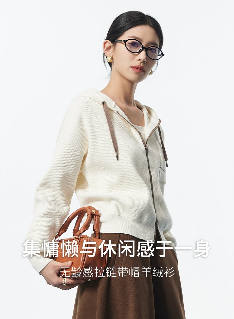 I'd爱帝无龄感山羊绒连帽休闲打底衫百搭针织小外套