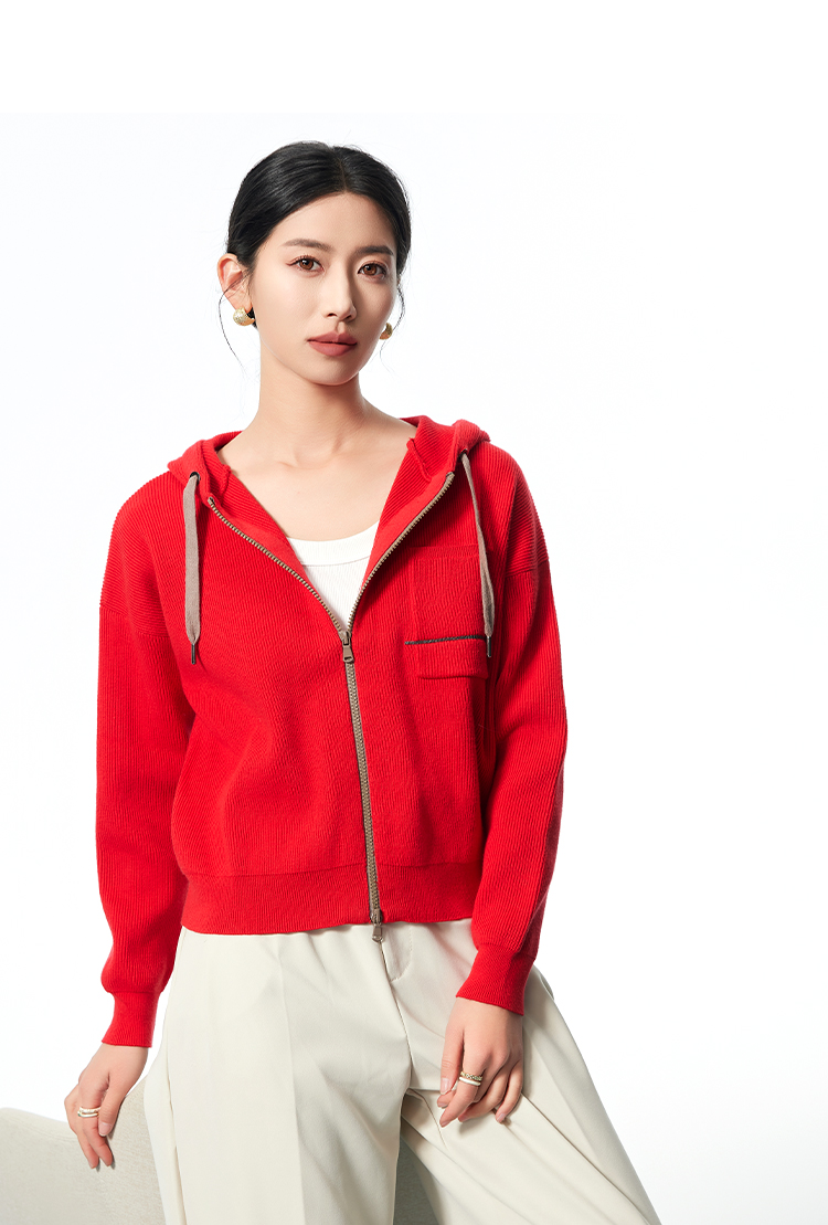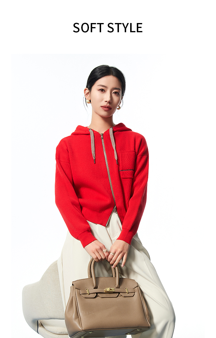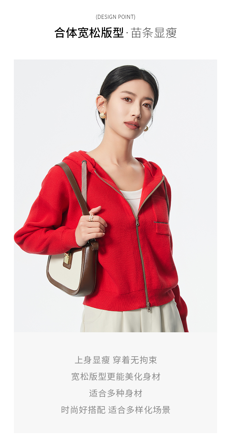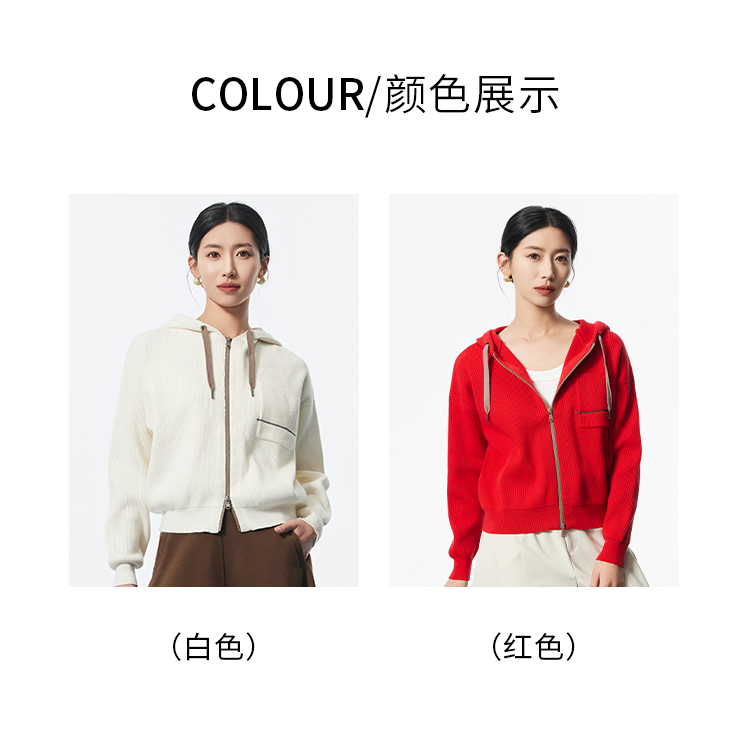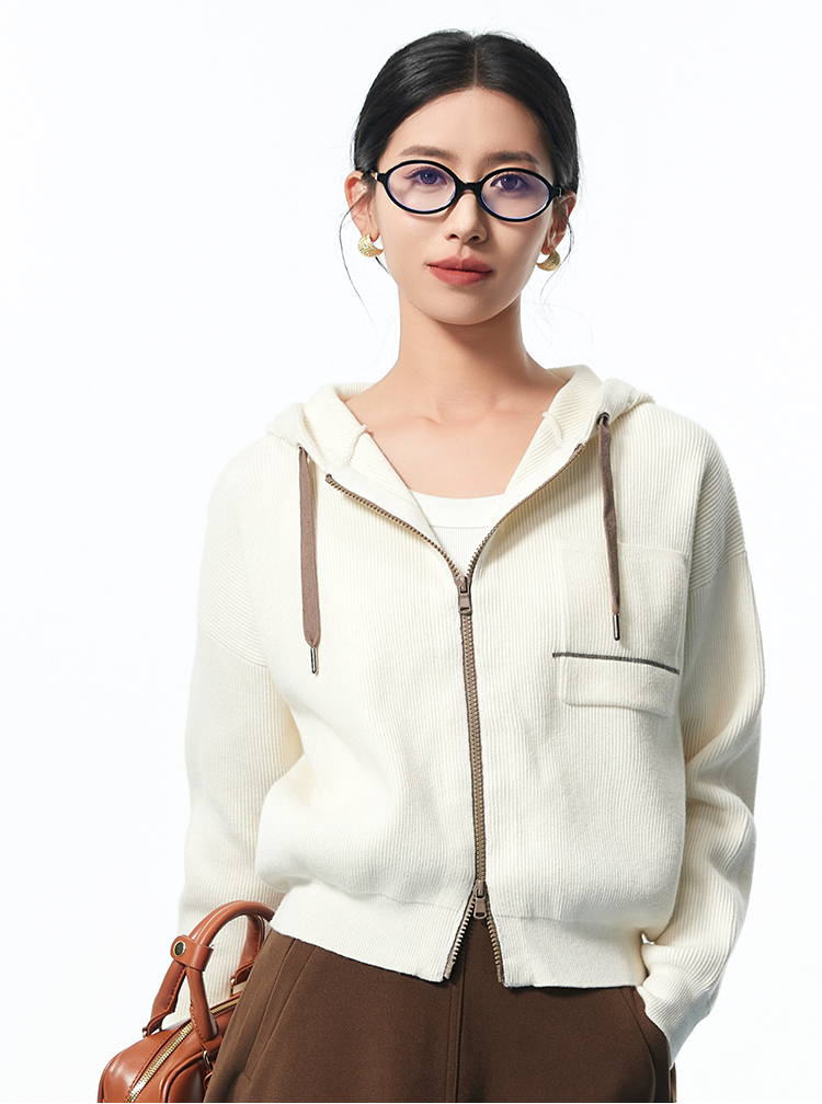 I'd爱帝无龄感山羊绒连帽休闲打底衫百搭针织小外套