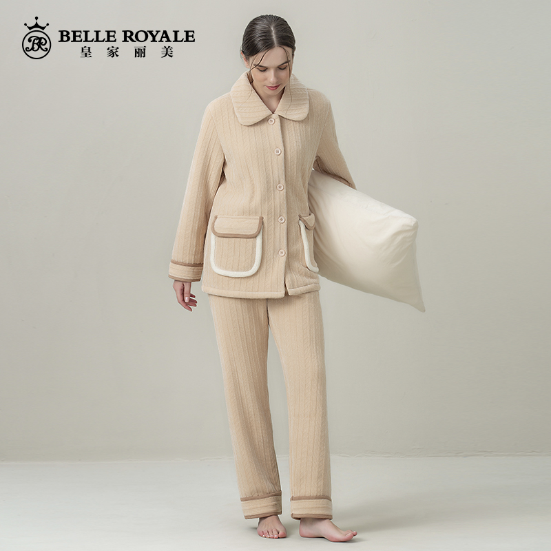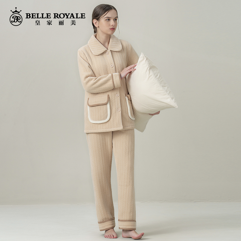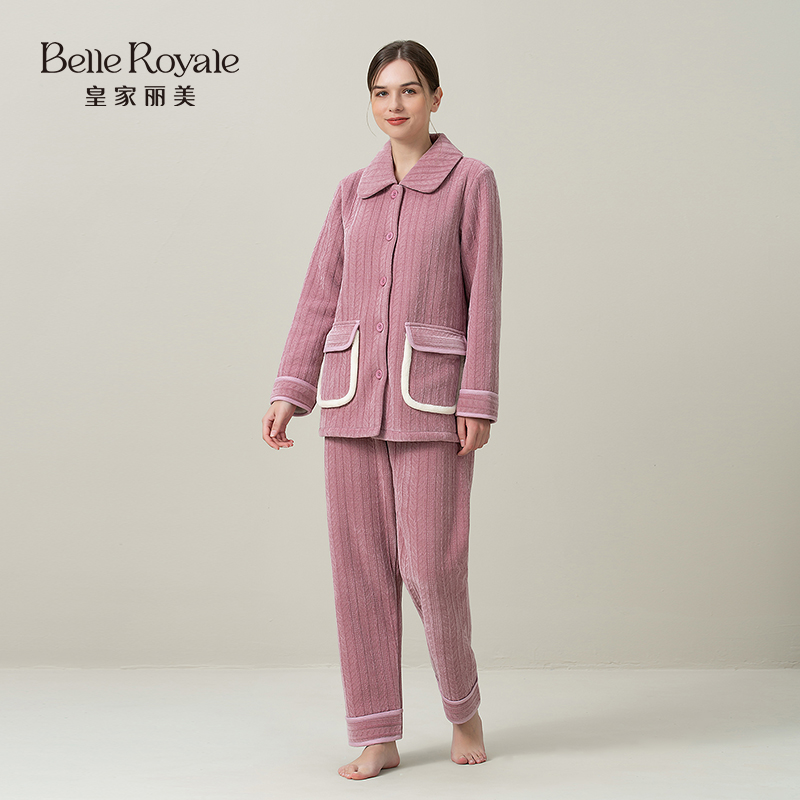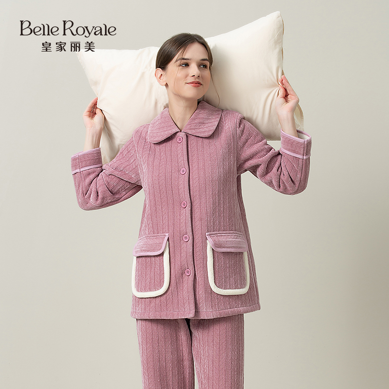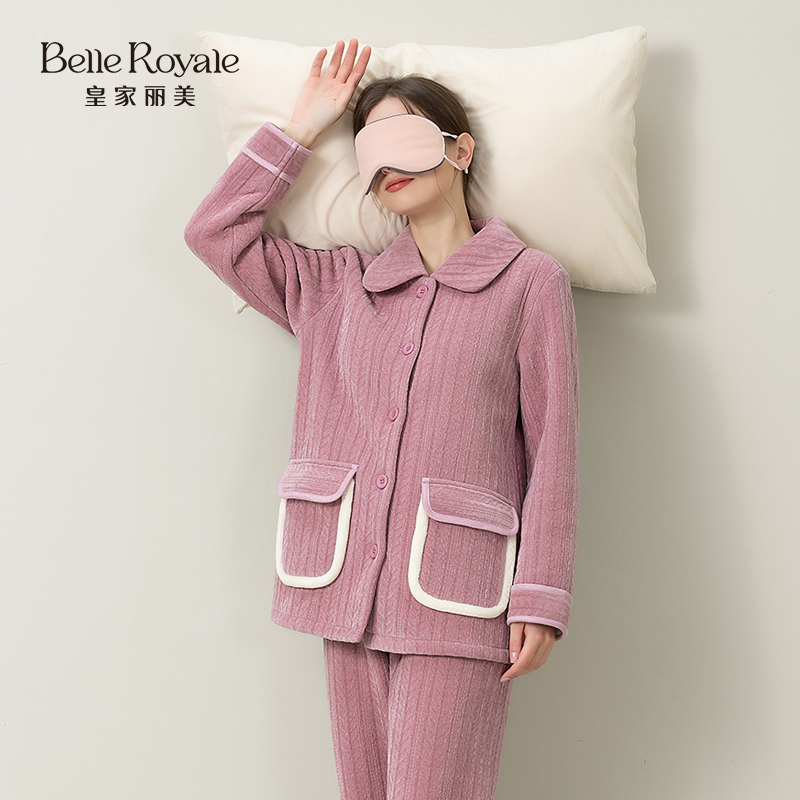 皇家丽美雪尼尔美丝绒睡衣女秋冬季家居服加绒保暖套装JJT9793