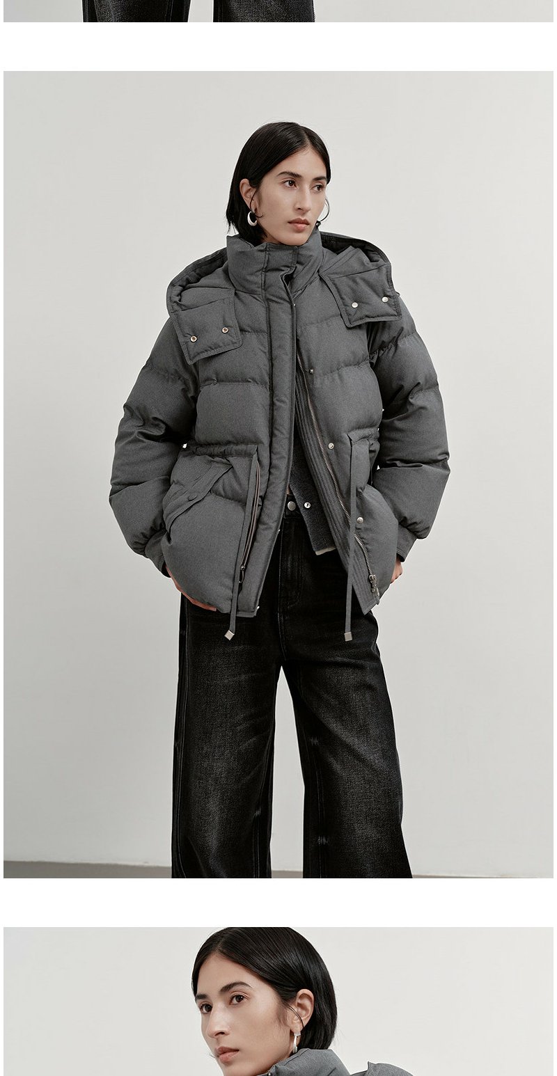 NEELLY纳俪商场同款冬新款休闲保暖短款连帽羽绒服女百搭廓形外套N25113L01155