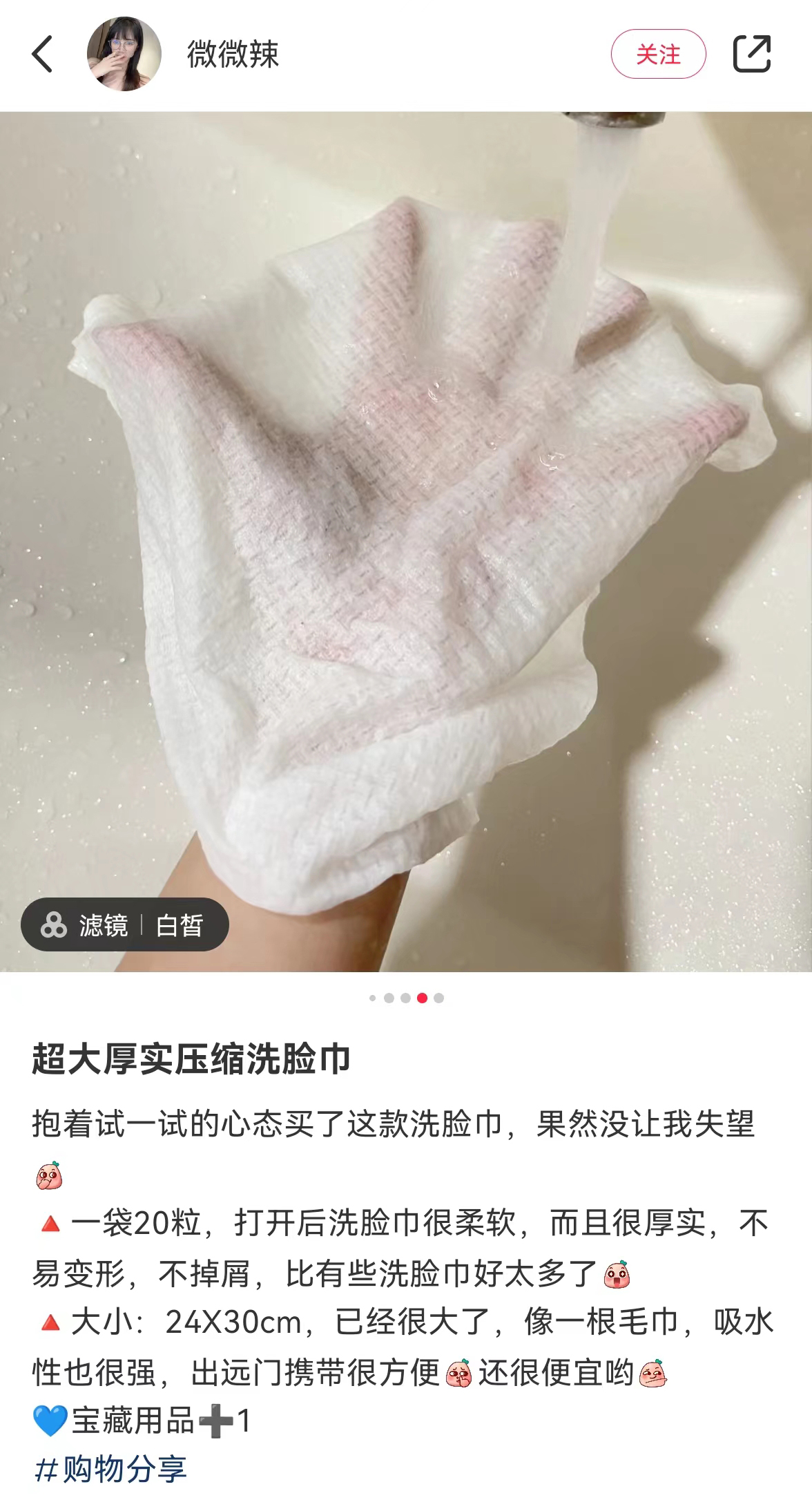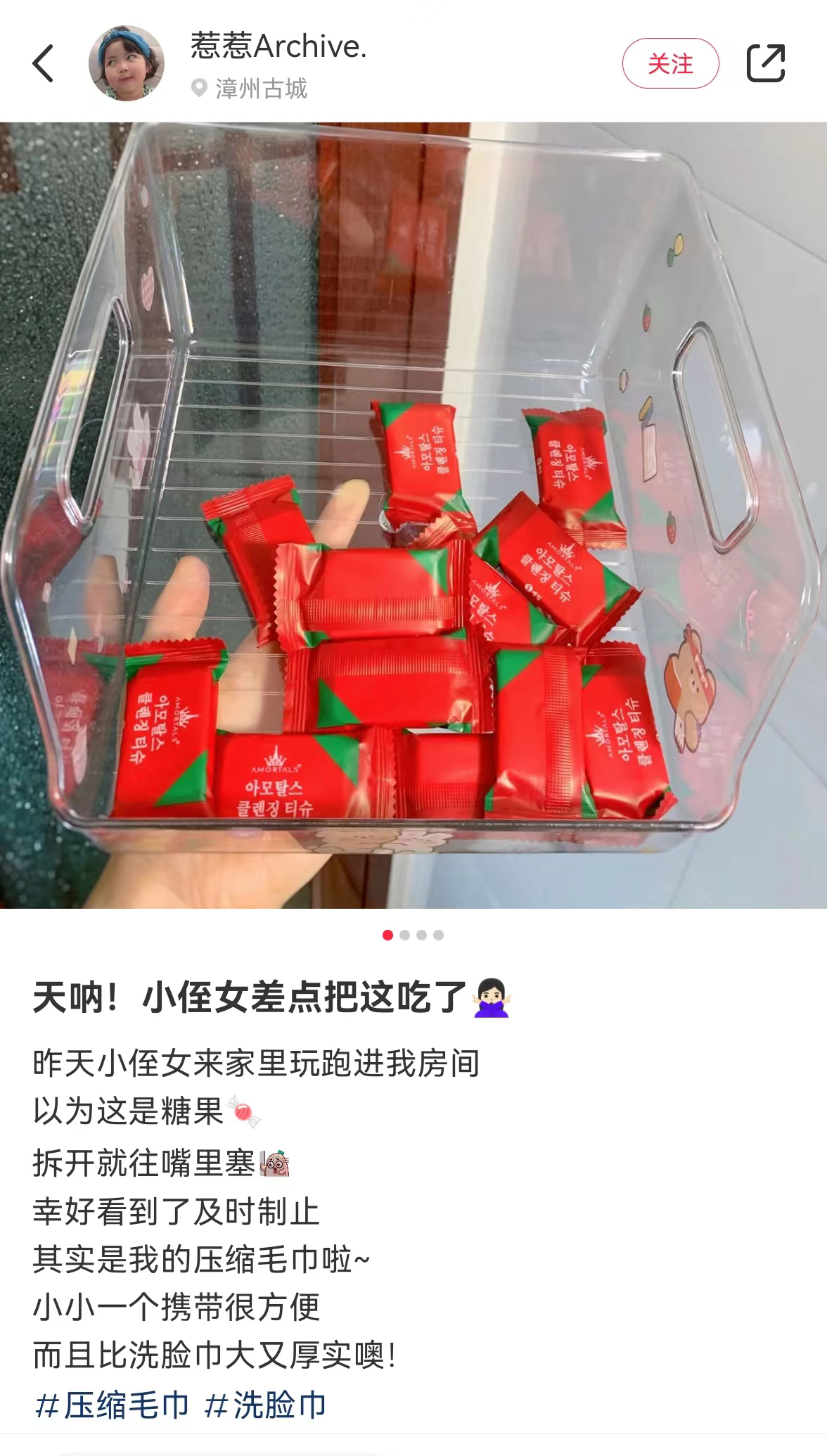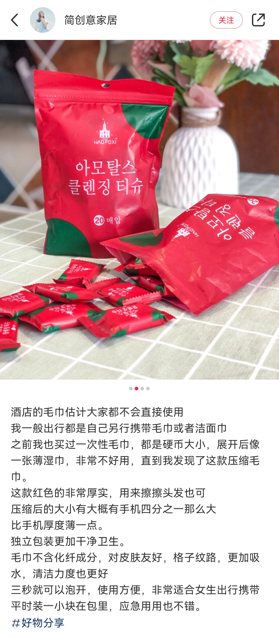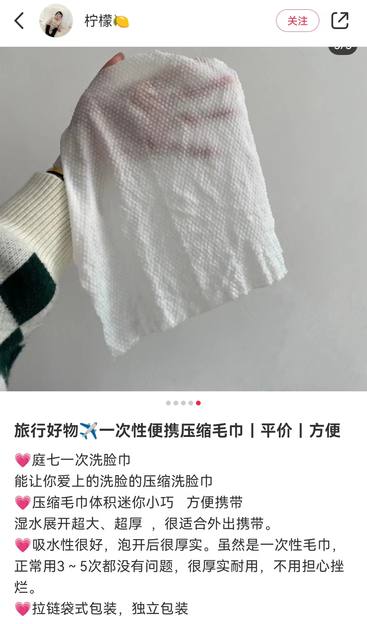 推荐一款性价比高很适合出差用的一次性压缩毛巾,携带很方便!采用100%植物纤维,是对皮肤很温和的天然材质,不掉絮,吸水性能很好,并且不添加荧光剂等化学成分,即使你是敏感肌,也可以放心用。