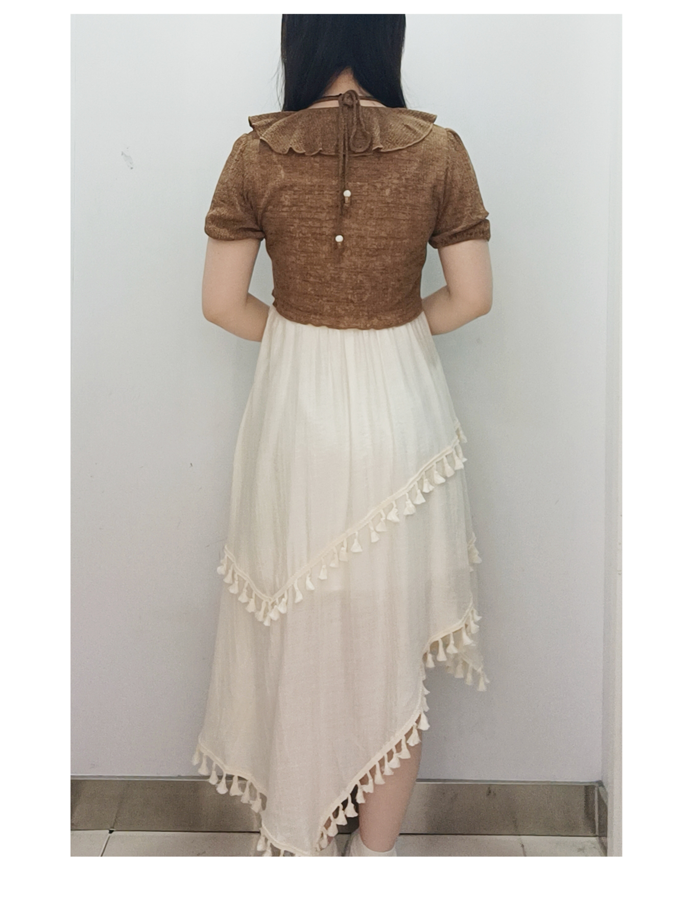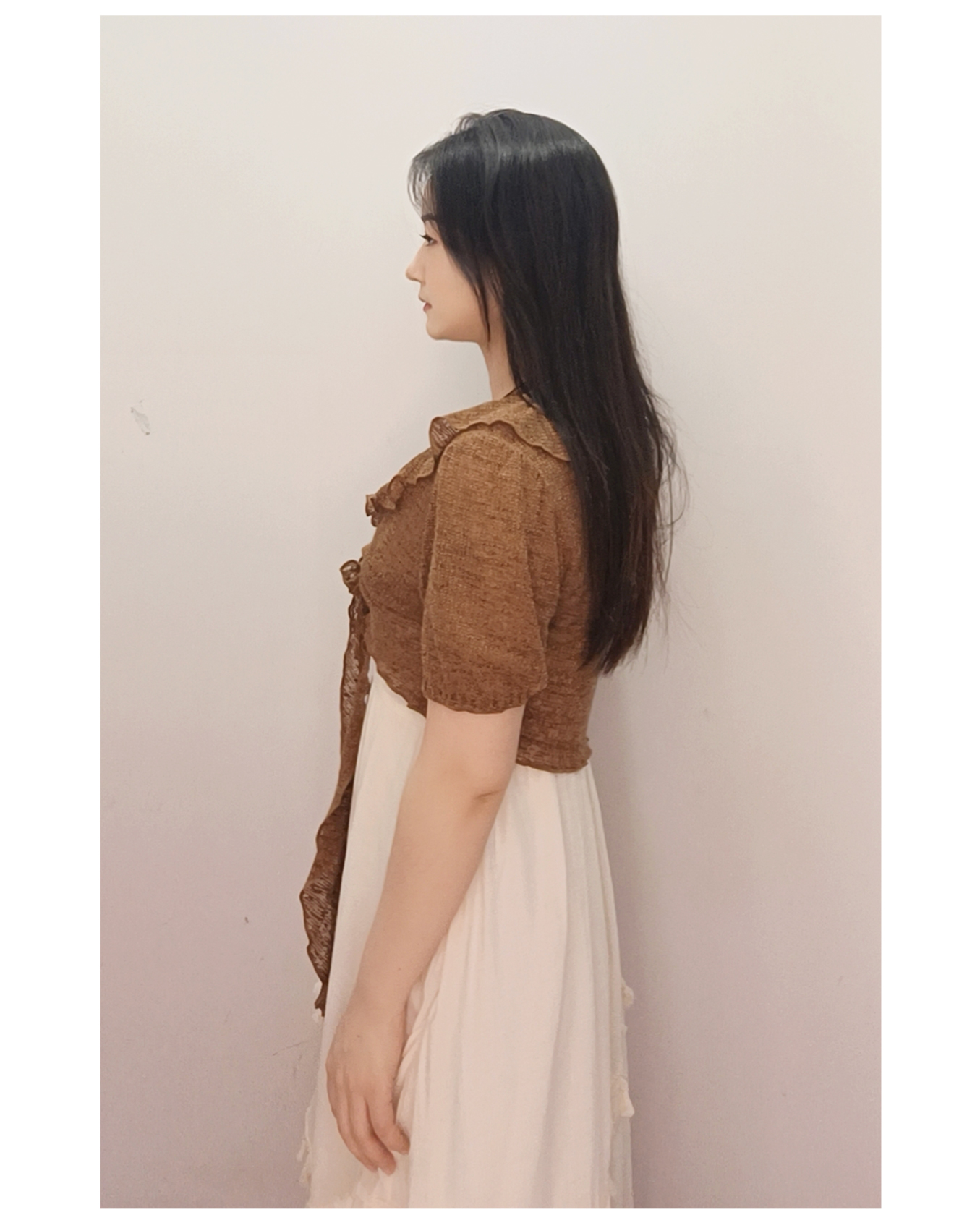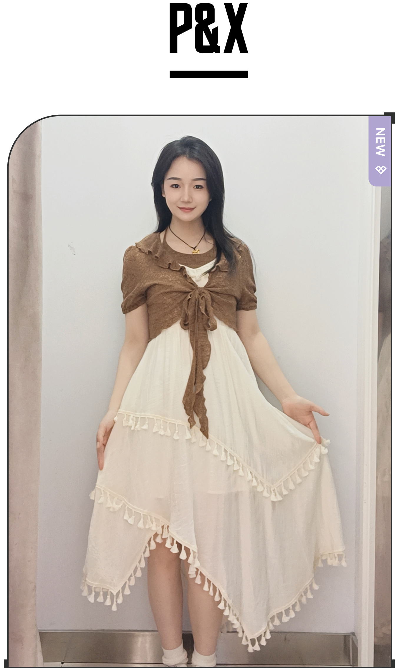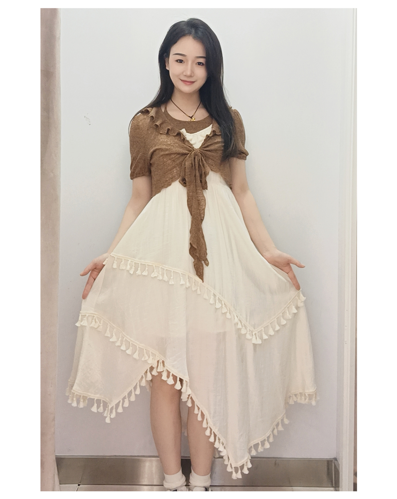 &X设计师女装复古开衫搭配显瘦连衣裙套装长裙 825214076 咖/杏
