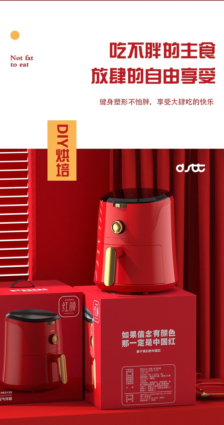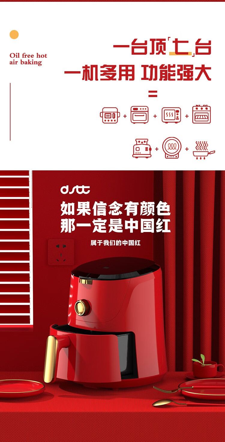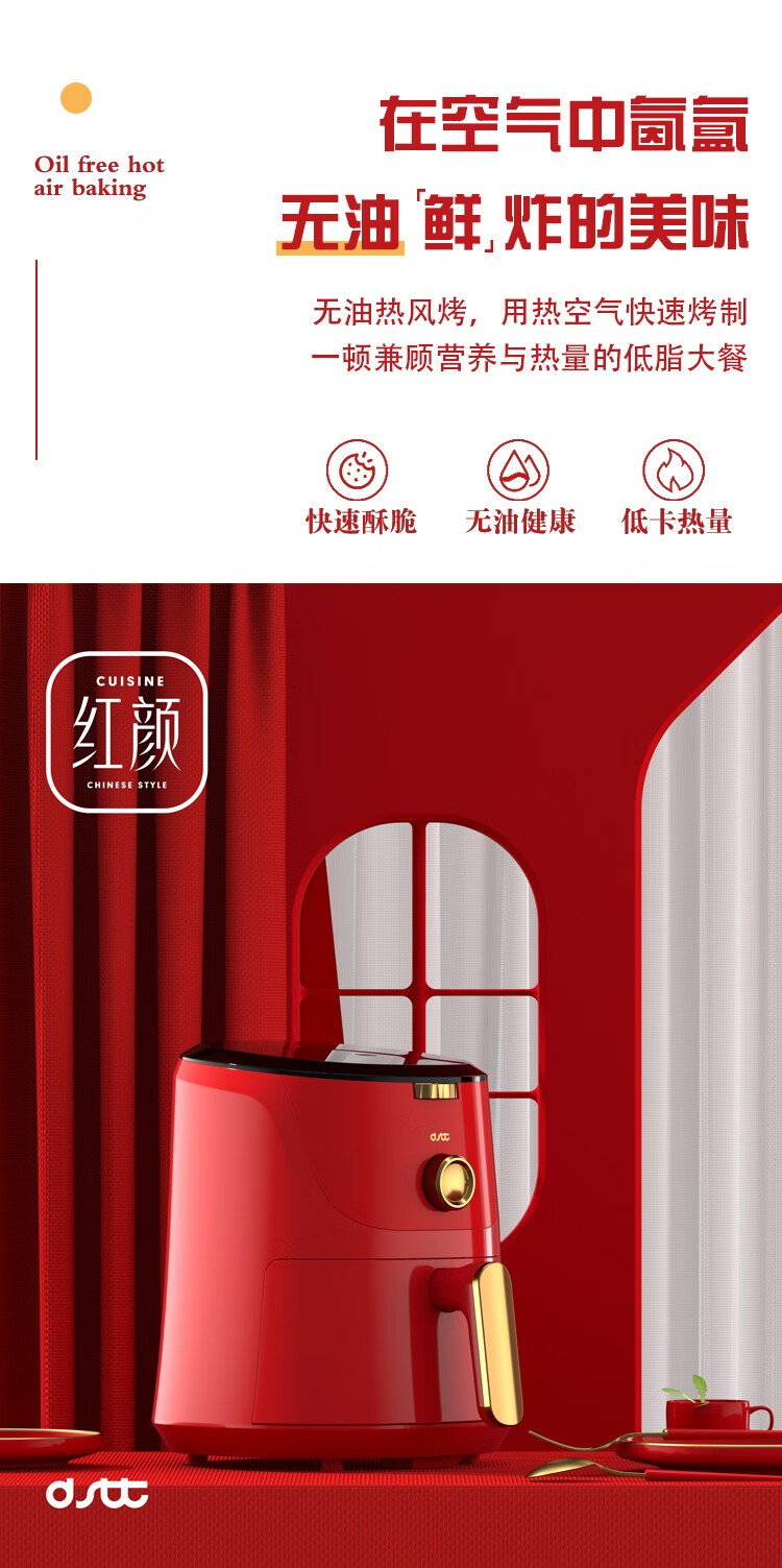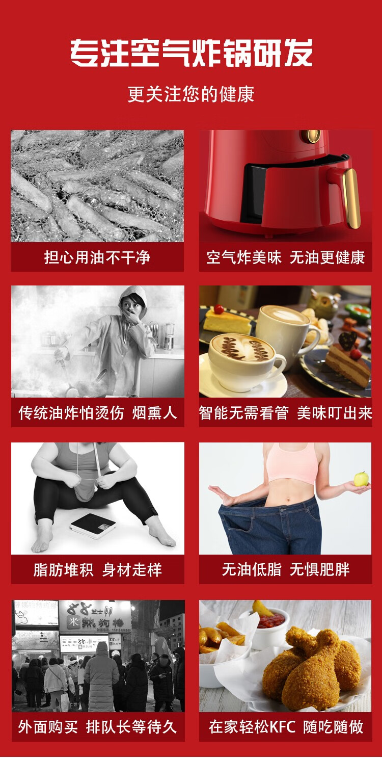 都市太太红颜系列·空气炸锅4L家用无油烟智能全自动大容量薯条机电炸锅_红色