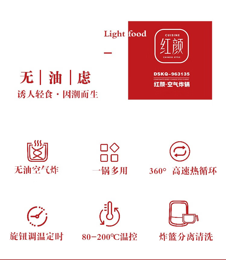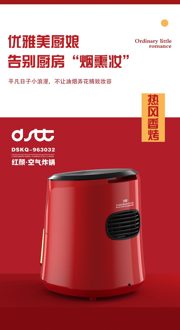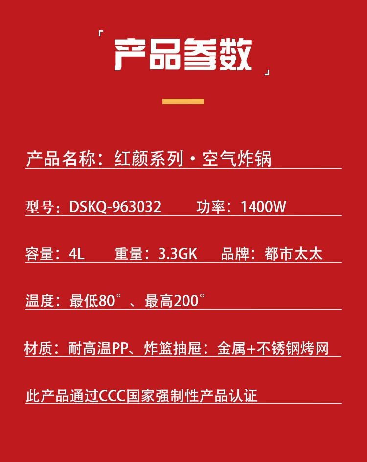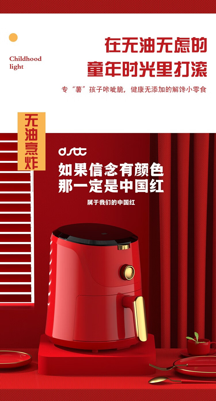 都市太太红颜系列·空气炸锅4L家用无油烟智能全自动大容量薯条机电炸锅_红色