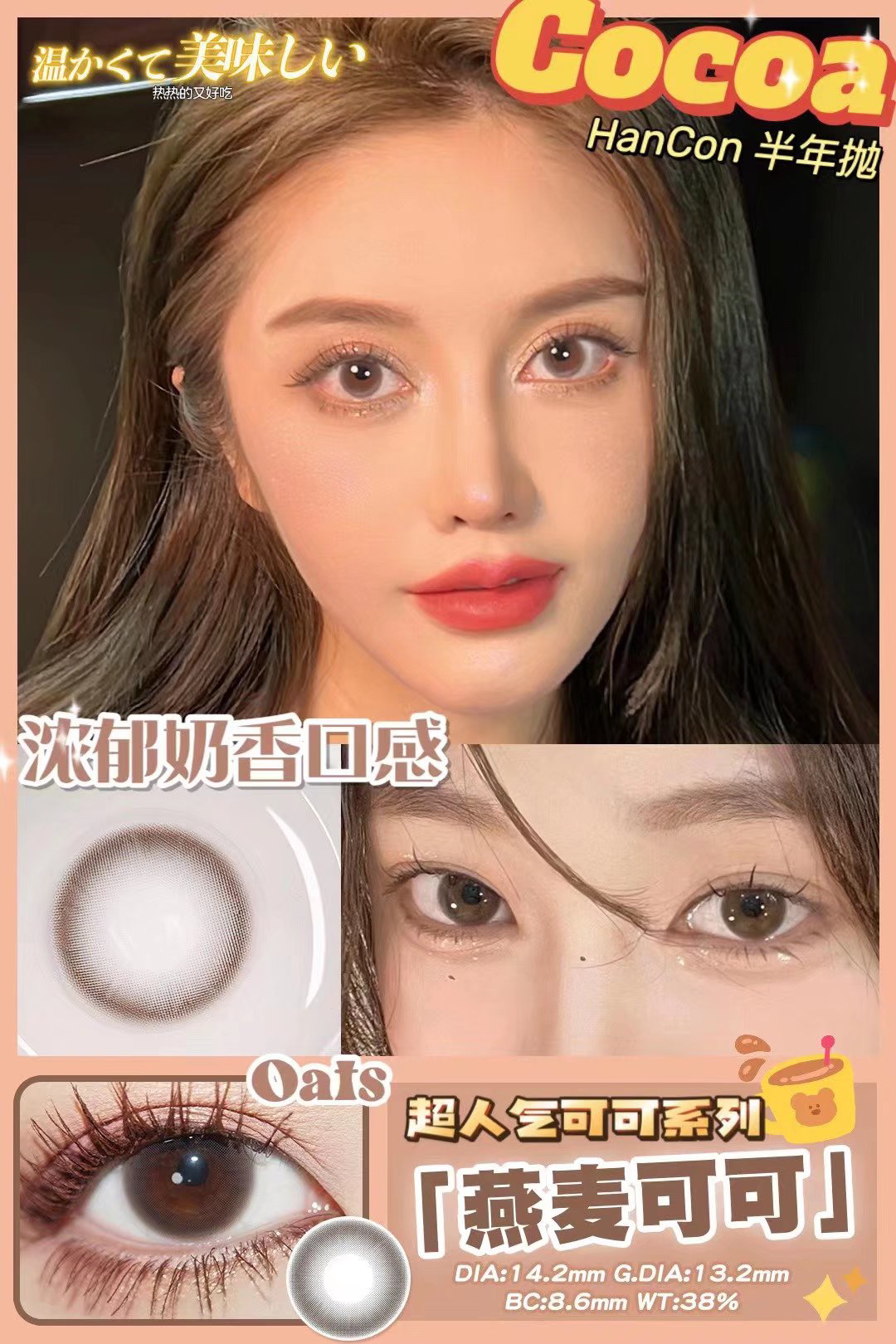 hancon 燕麦可可 14.2mm 半年抛 含硅水凝胶