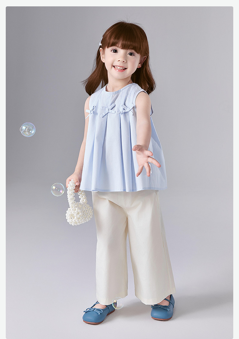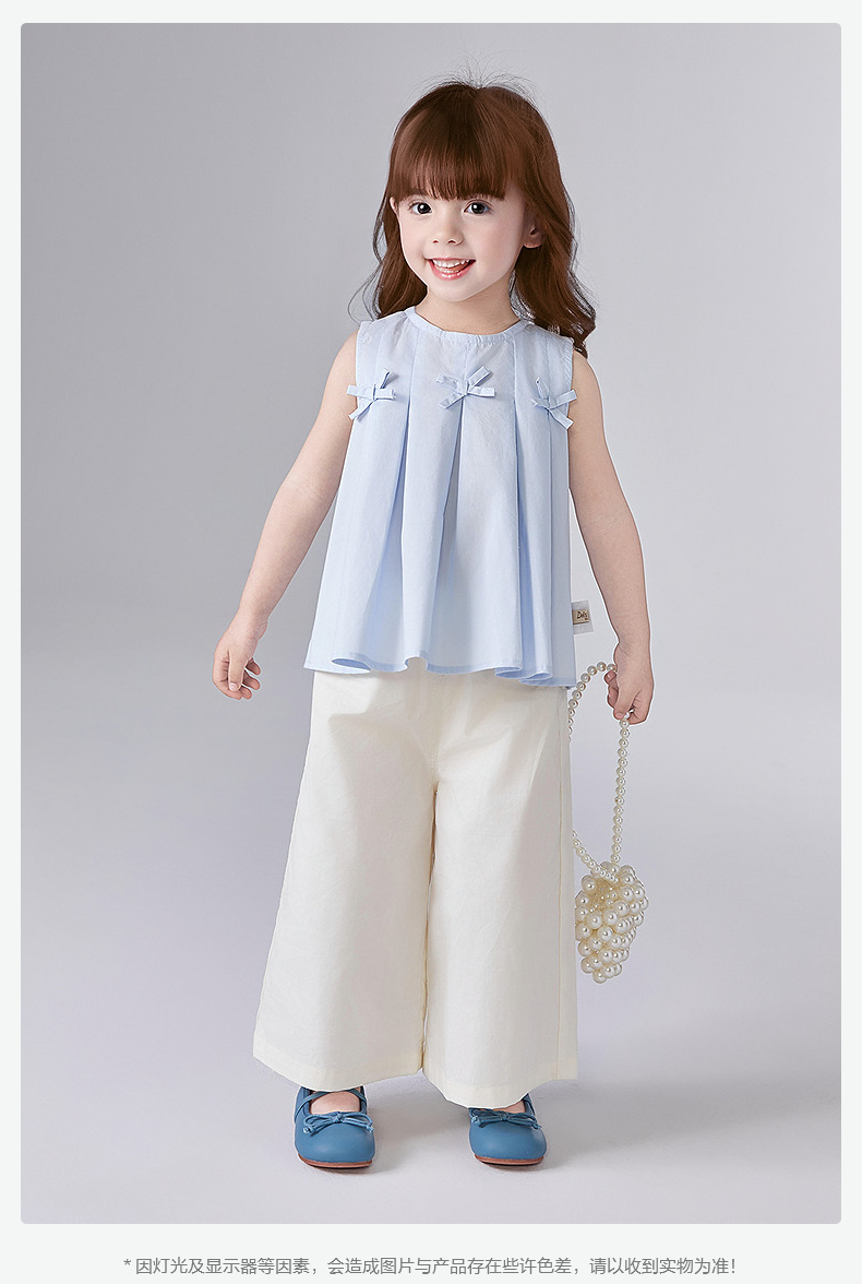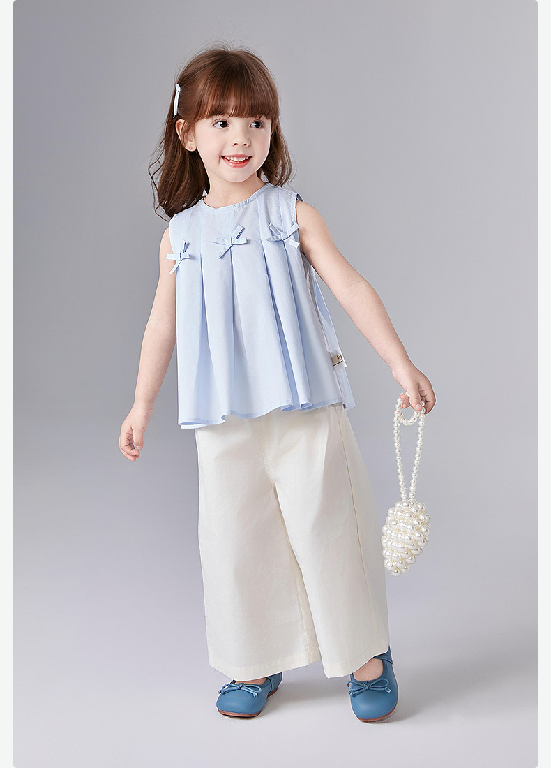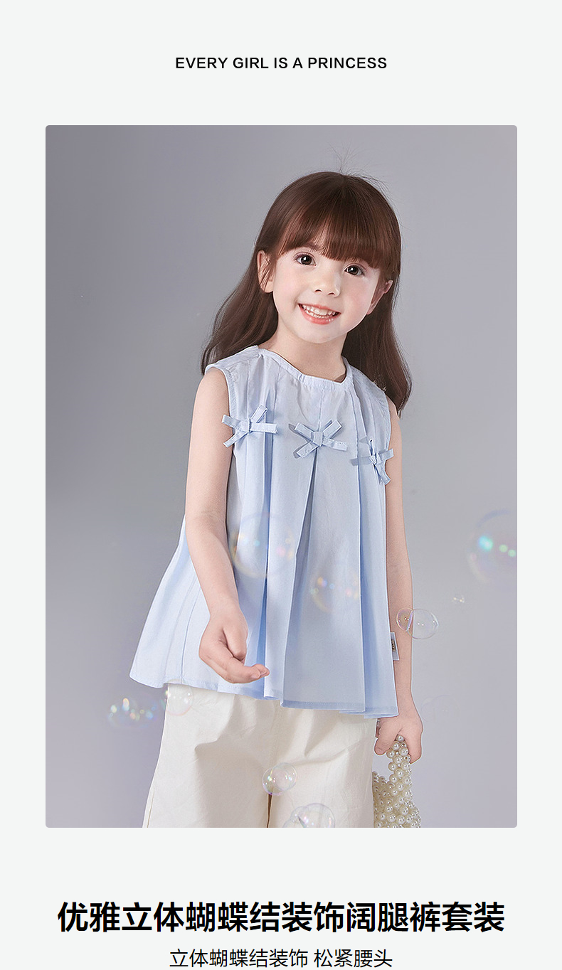 笛莎Deesha 童装女童套装2025夏新款女童优雅立体蝴蝶结装饰阔腿裤套装