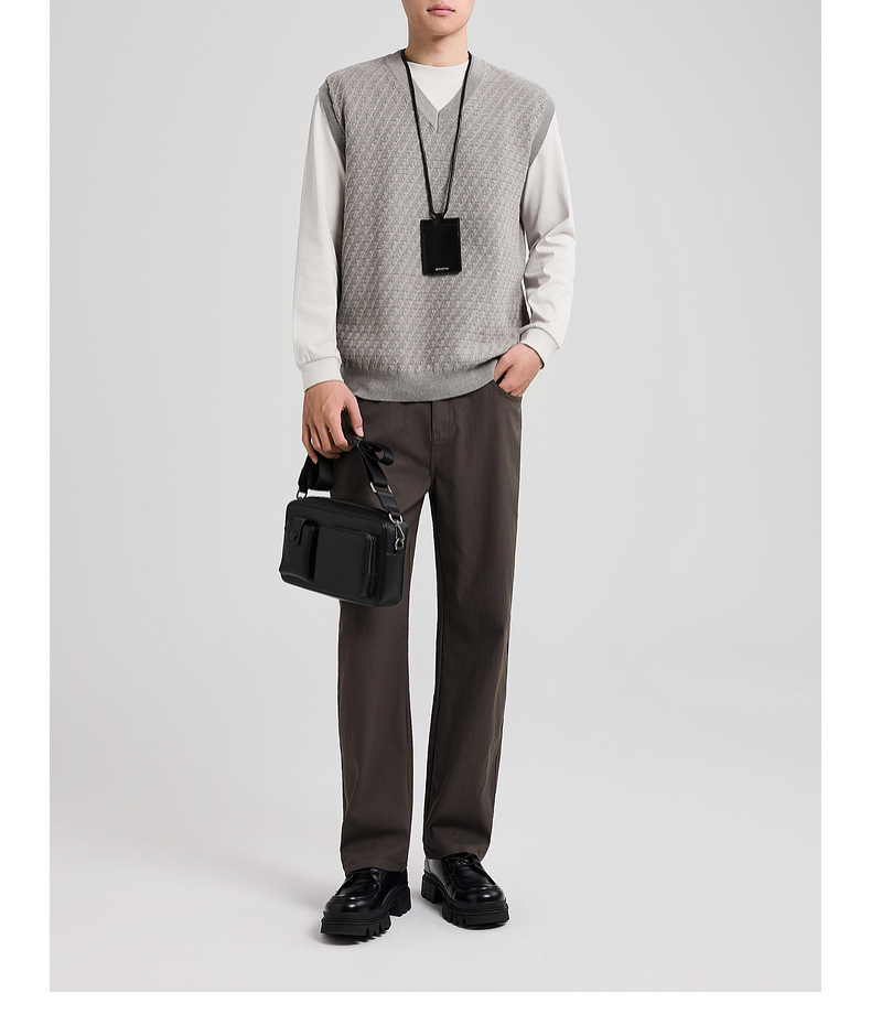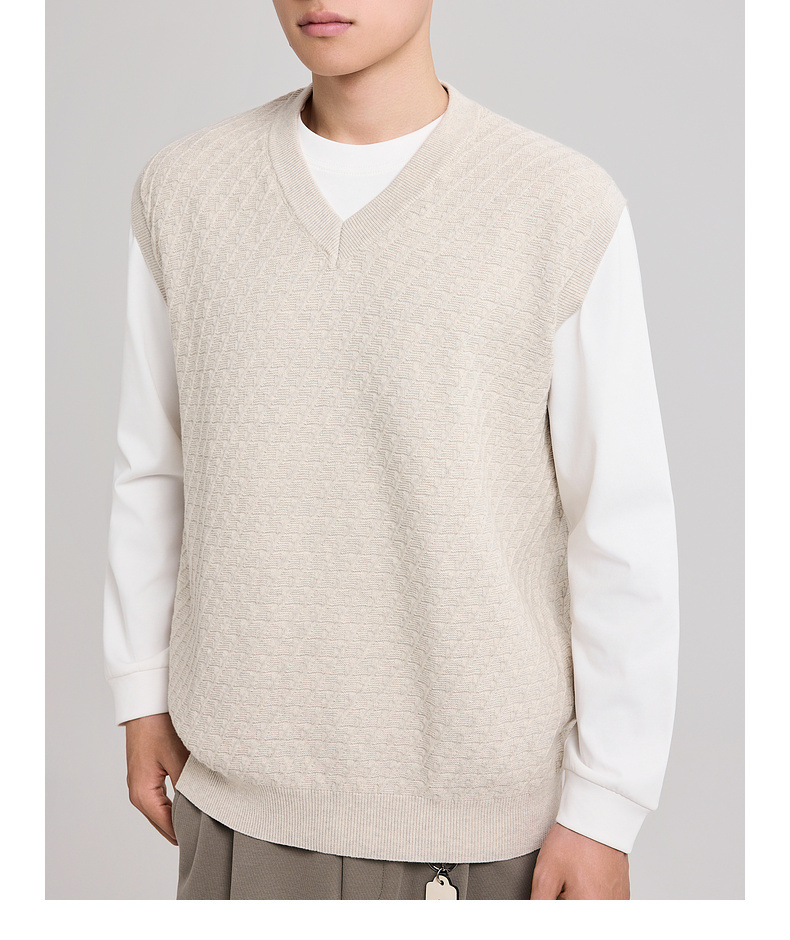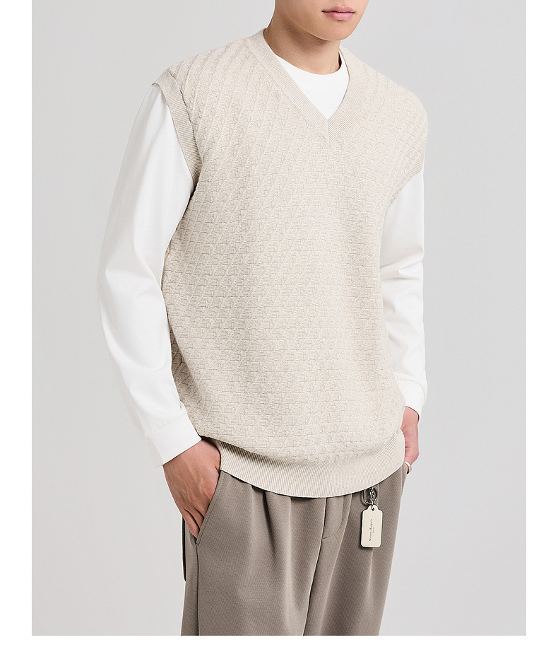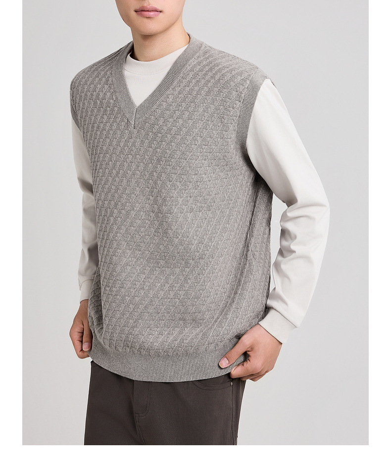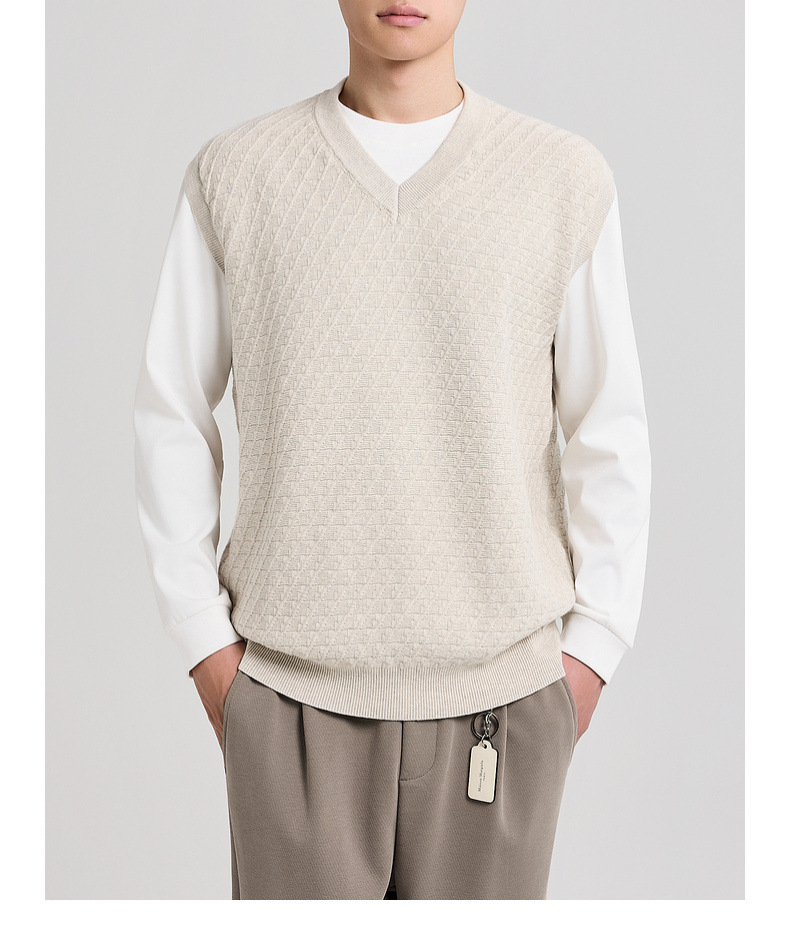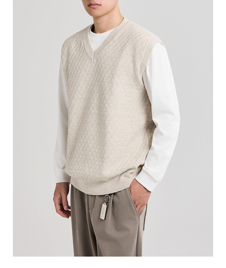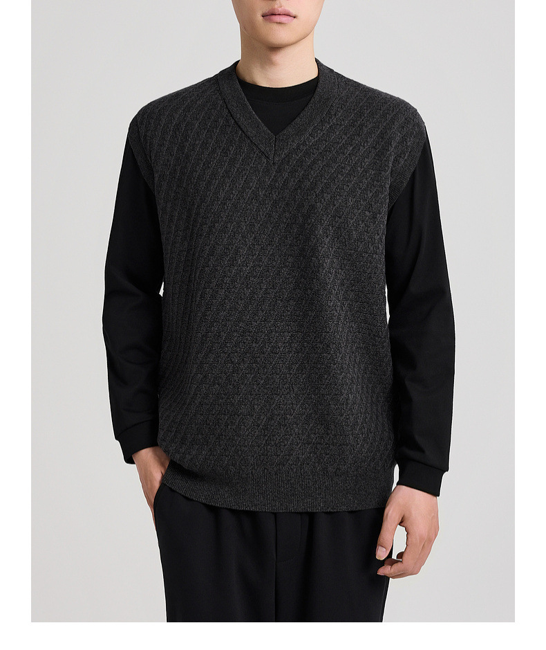 墨麦客男装简约V领针织背心男2025秋新款纯色套头针织衫男21982