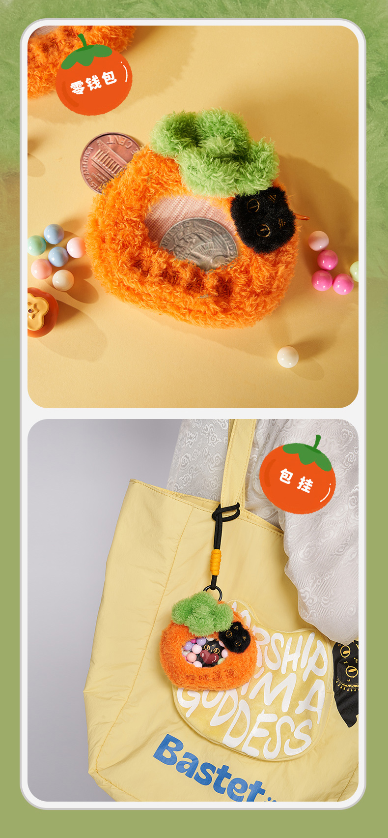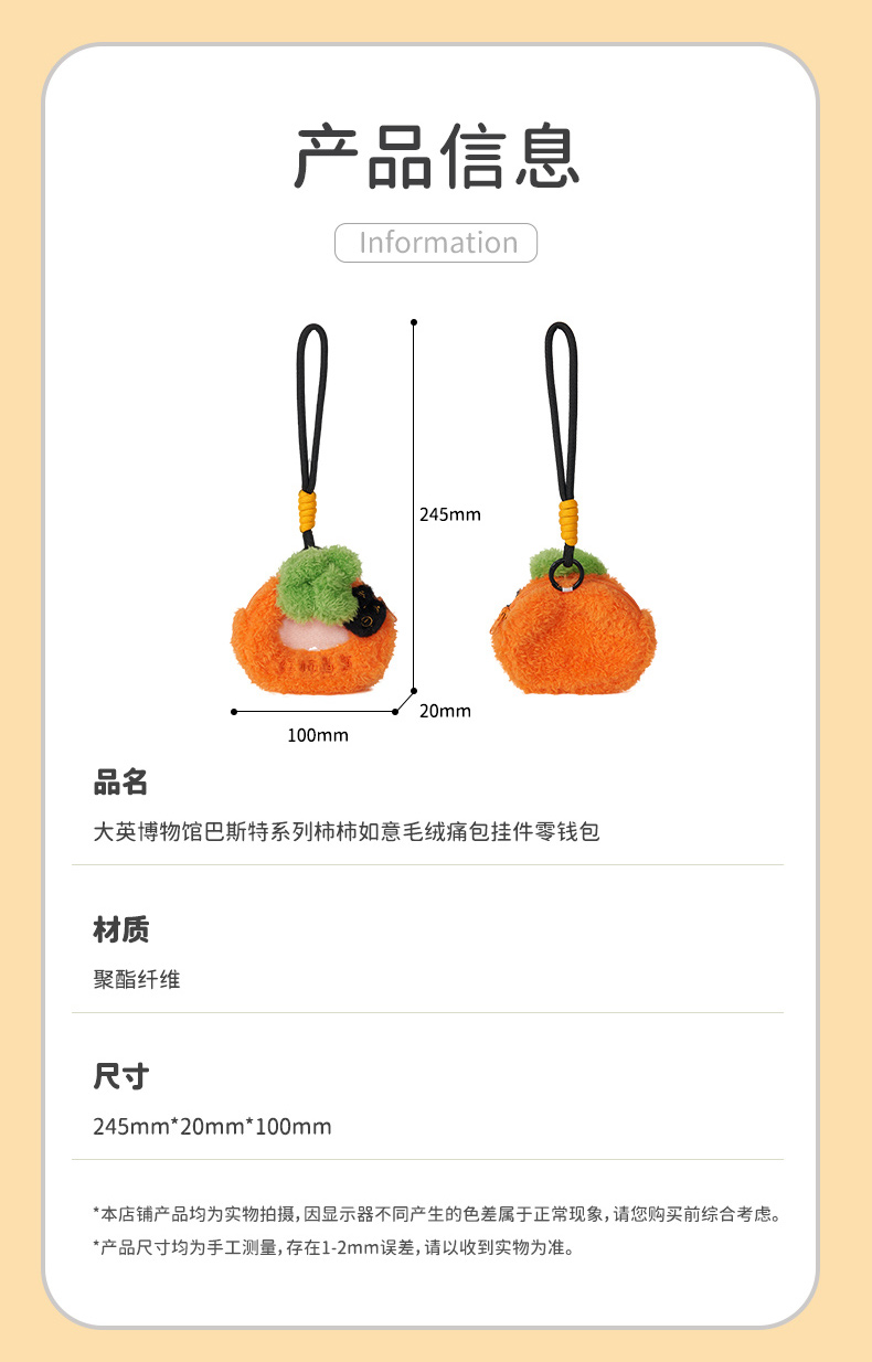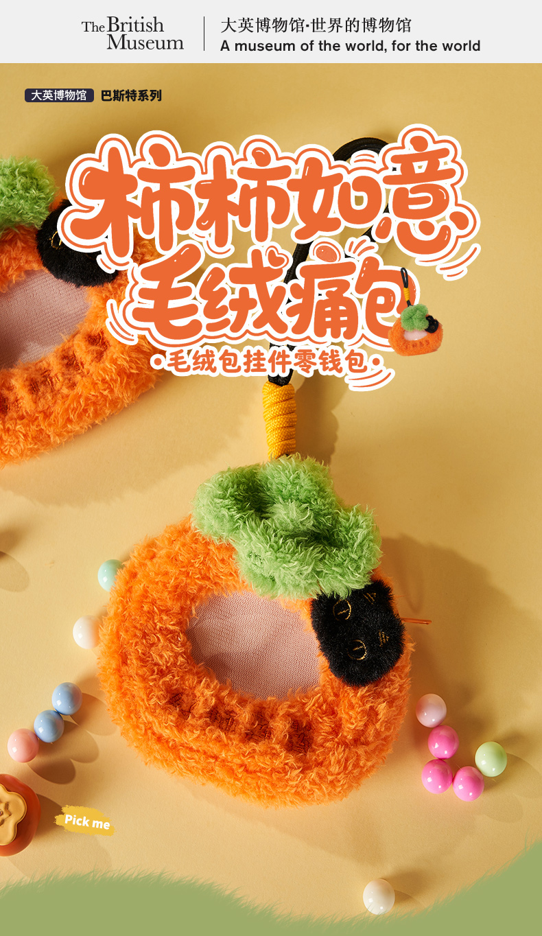大英博物馆 巴斯特系列 柿柿如意毛绒痛包挂件 零钱包