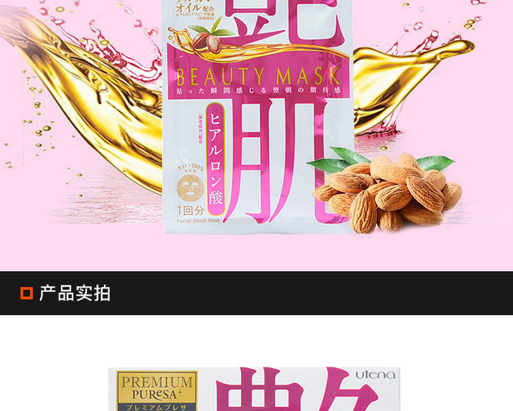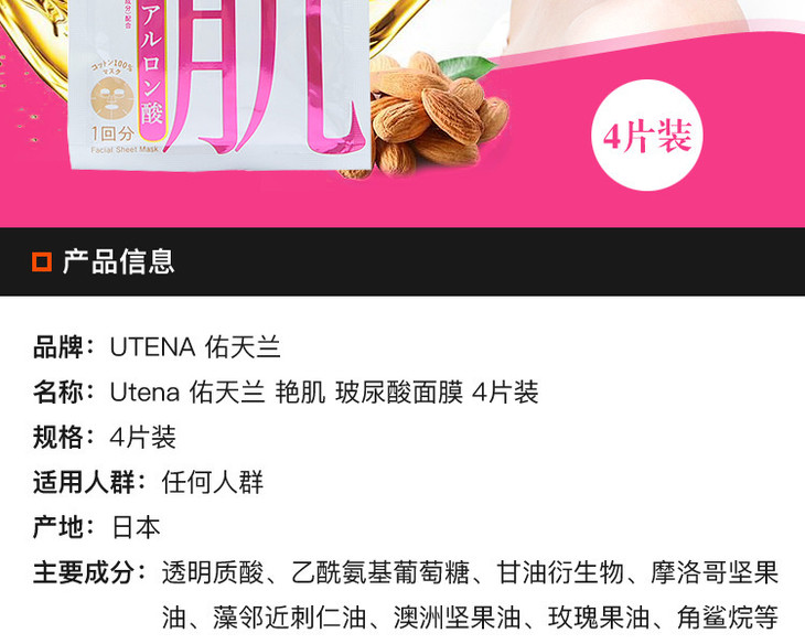 【保税仓】日本Utena 佑天兰 艳肌 玻尿酸面膜 4片装