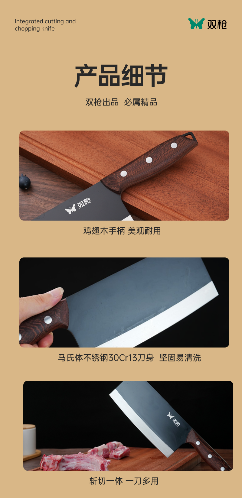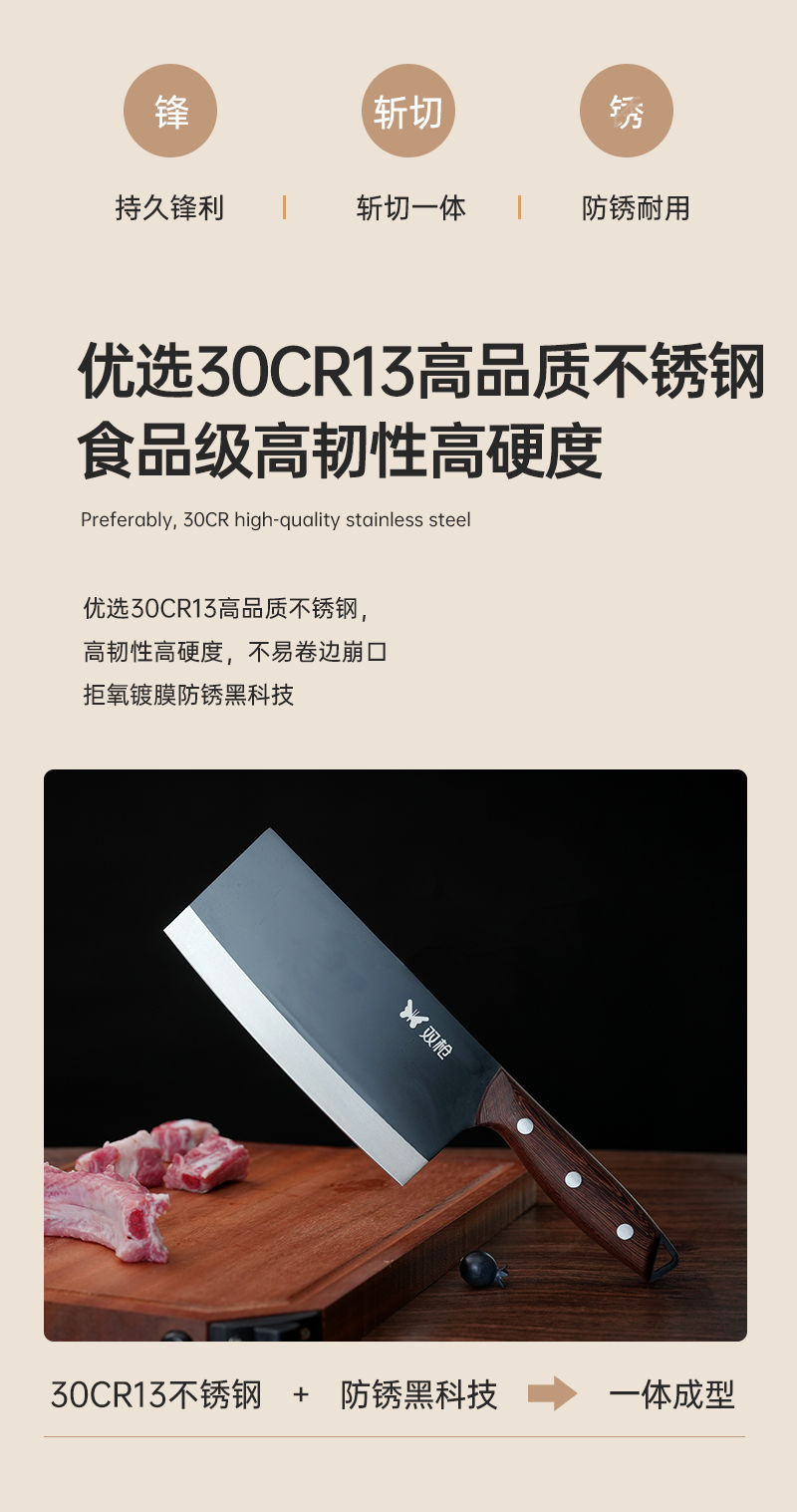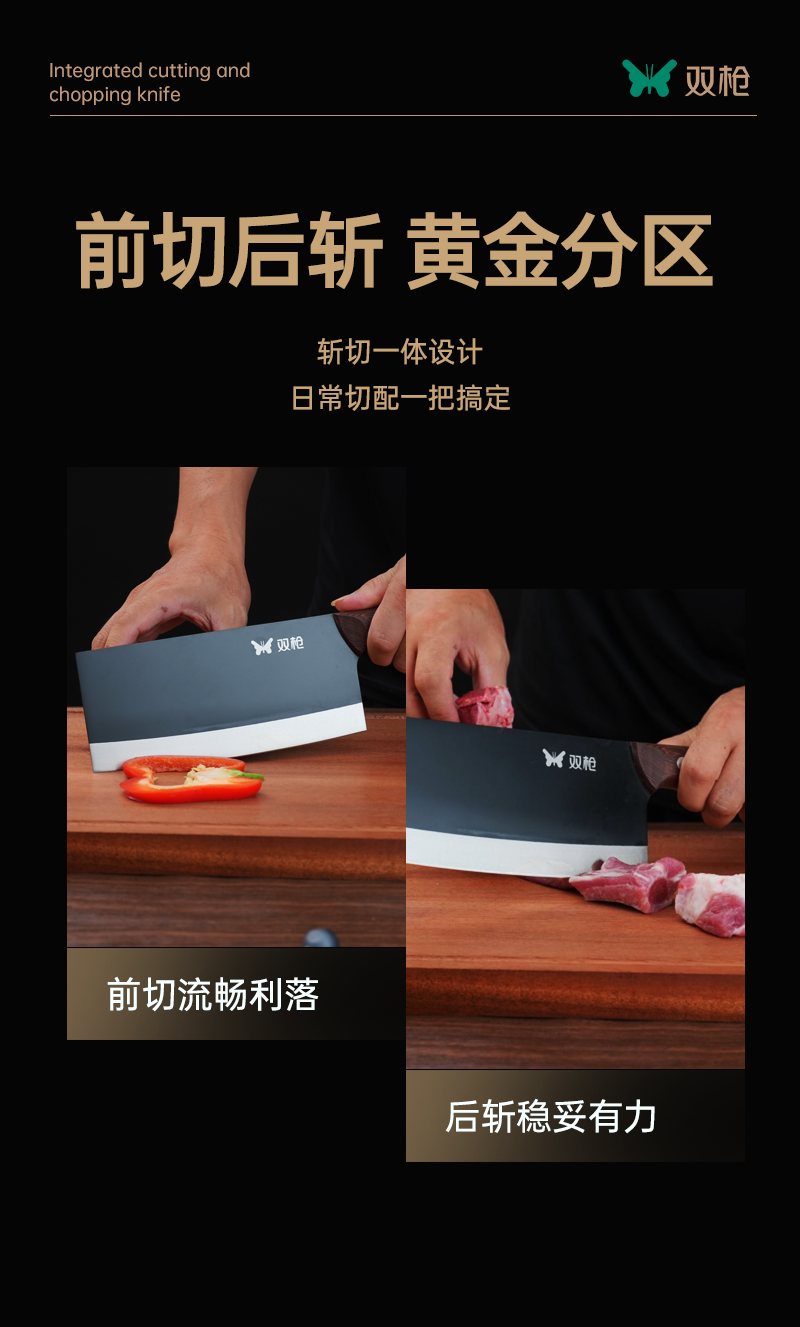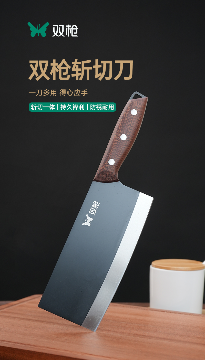 双枪斩切刀 不锈钢30Cr13刀身 40多道工序锻造 抗腐蚀抗磨损 切剁斩刺一刀到位 下厨效率翻倍!