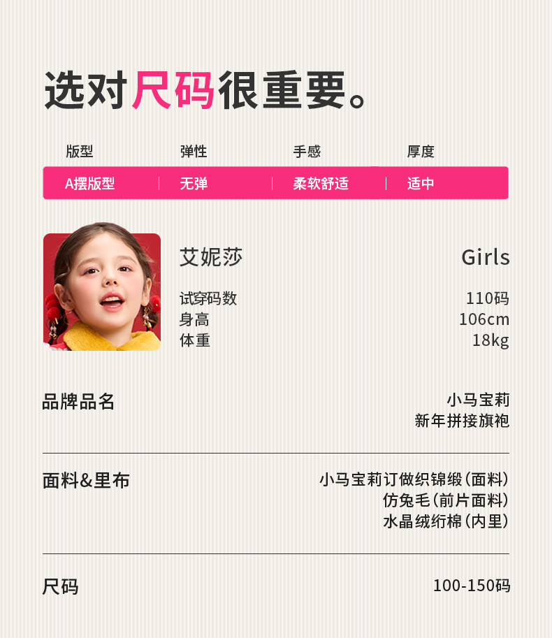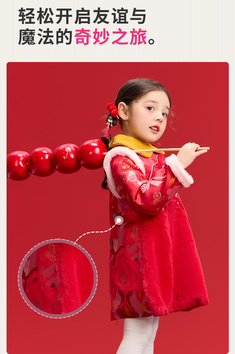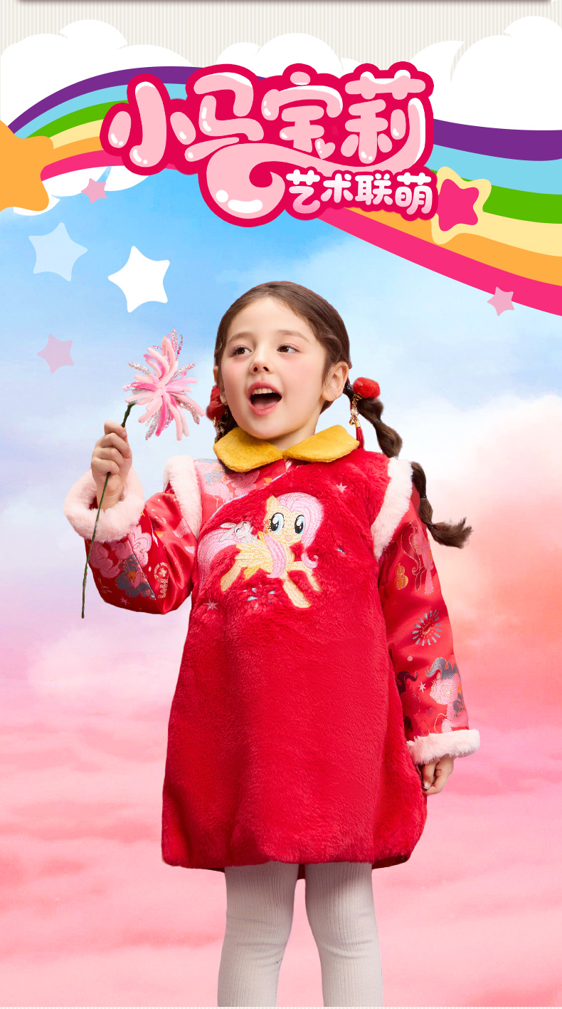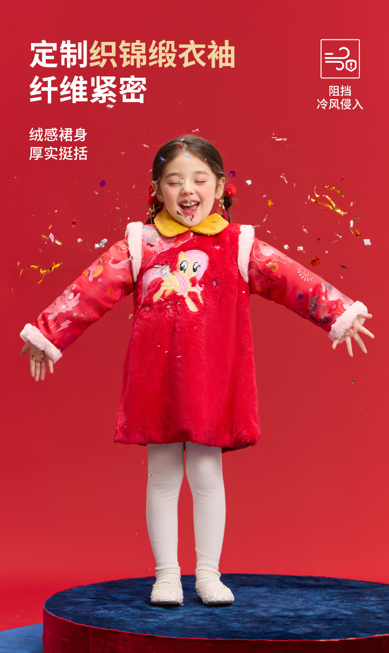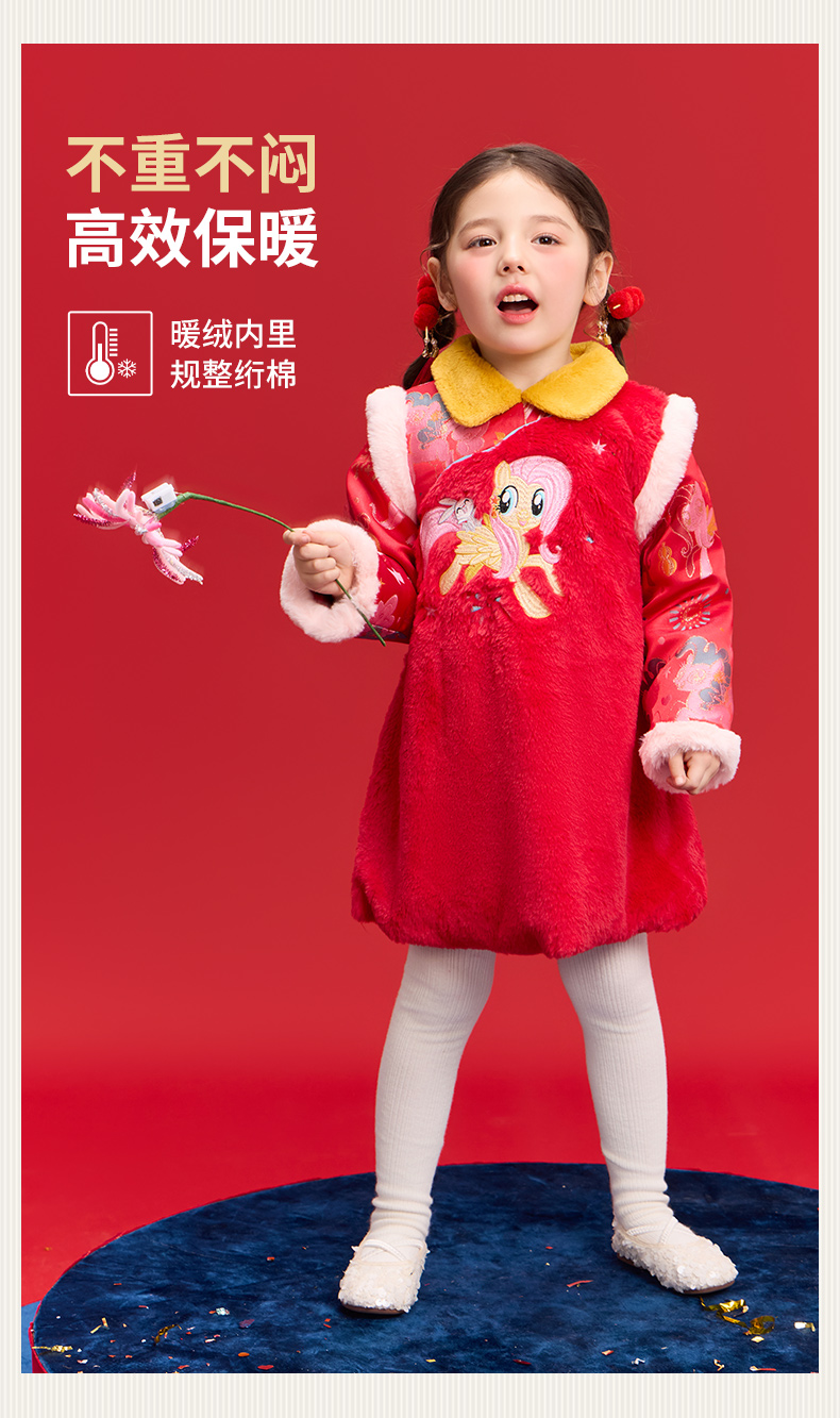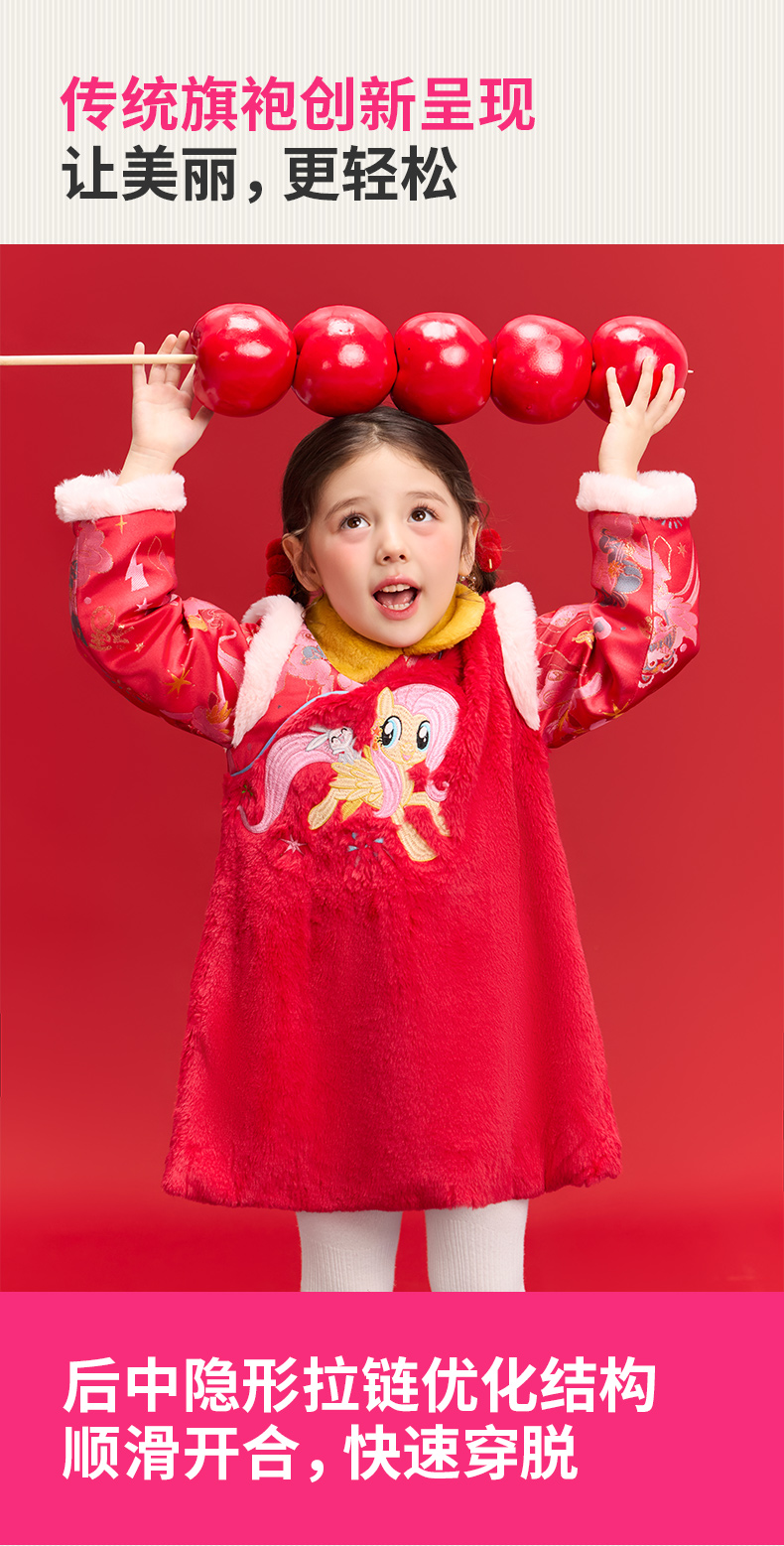 小马宝莉联名年衣童装冬季新品女童中式小马宝莉新年拼接旗袍