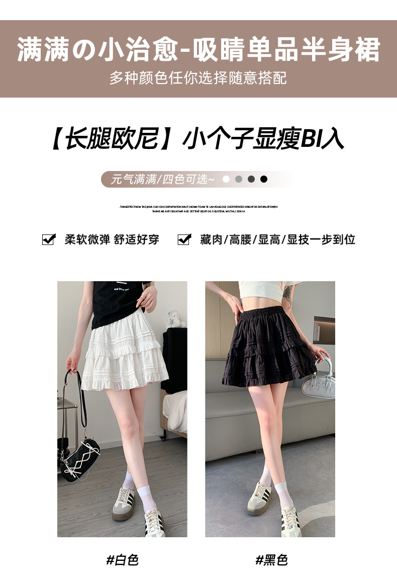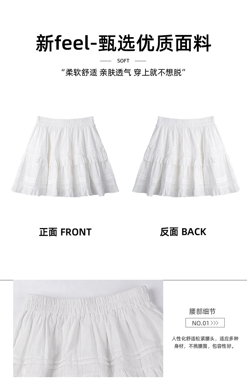 【高腰显瘦设计、蓬松百褶裙摆】白色纯棉短裙女2026新款春季芭蕾风蓬蓬百褶裙高腰显瘦a字半身裙.TA