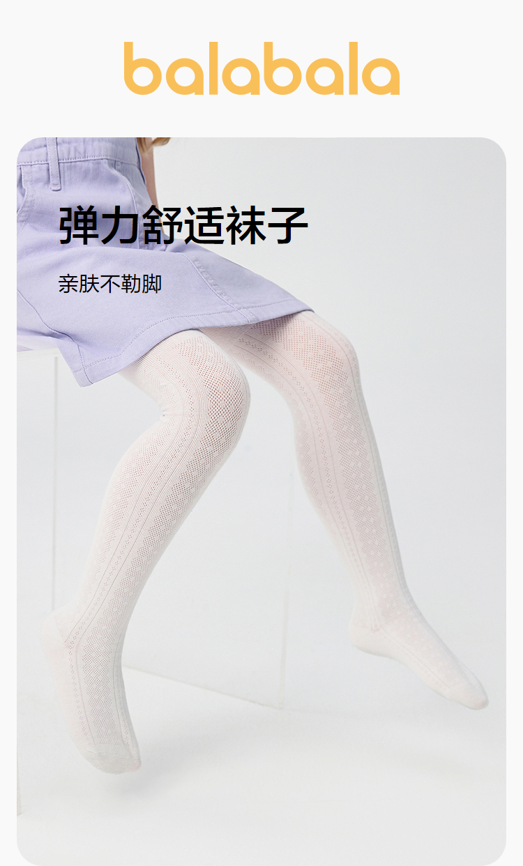 巴拉巴拉儿童连裤袜女童网眼袜夏季薄款透气打底甜美肌理单双装