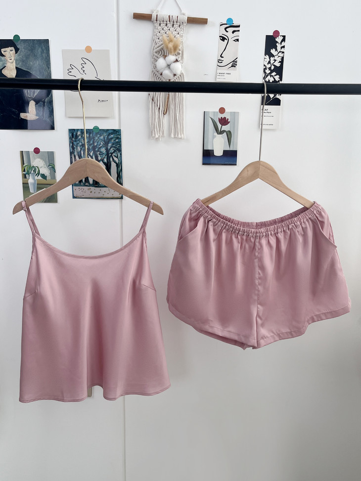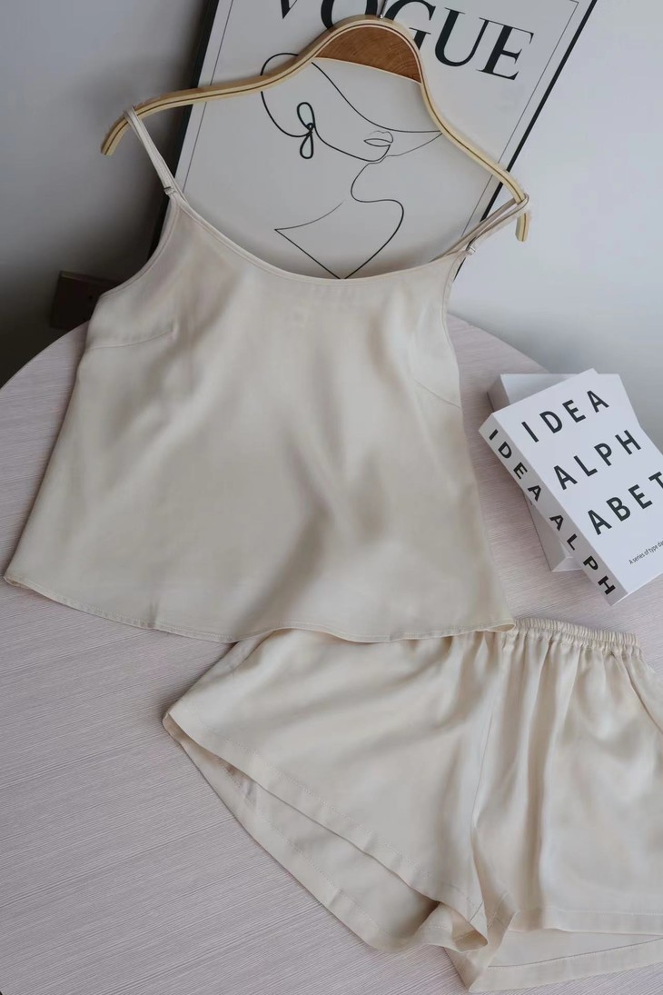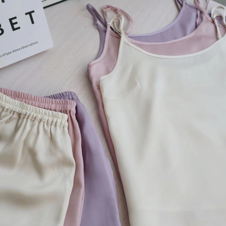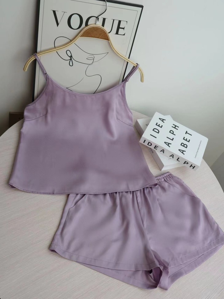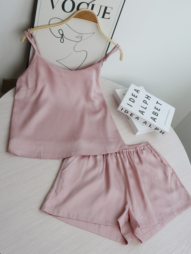 细腻丝滑,珠光质感是一眼便知的贵气!! 穿起来却顺滑细腻,不易起球、勾丝、可机洗!!进口的兰精天丝面料,成本价本就高 再加上人工、包装等一套下来市面上一套都要大几百 本团跟品牌谈判、让利,抢到的今夏爆款 59.9一套卖了!! 吊带+短裤,夏季最舒适的款式
