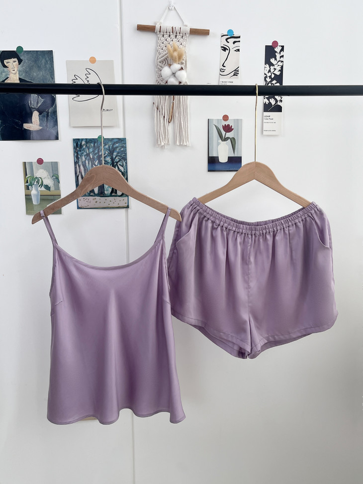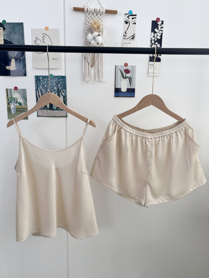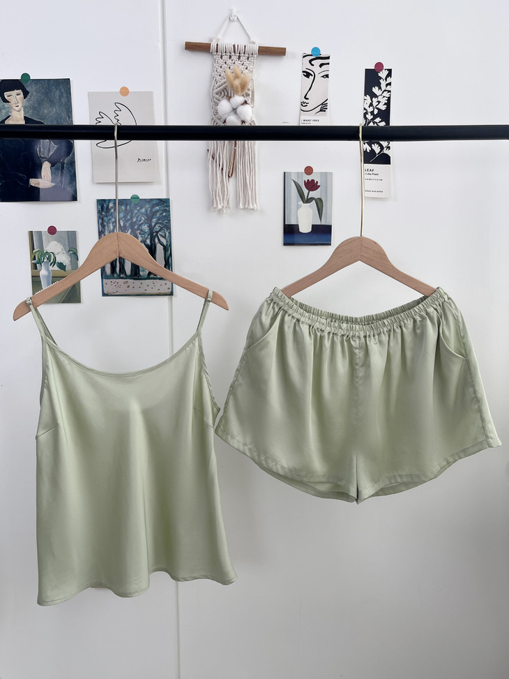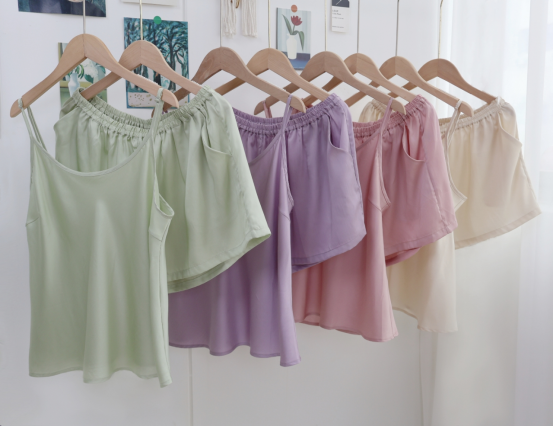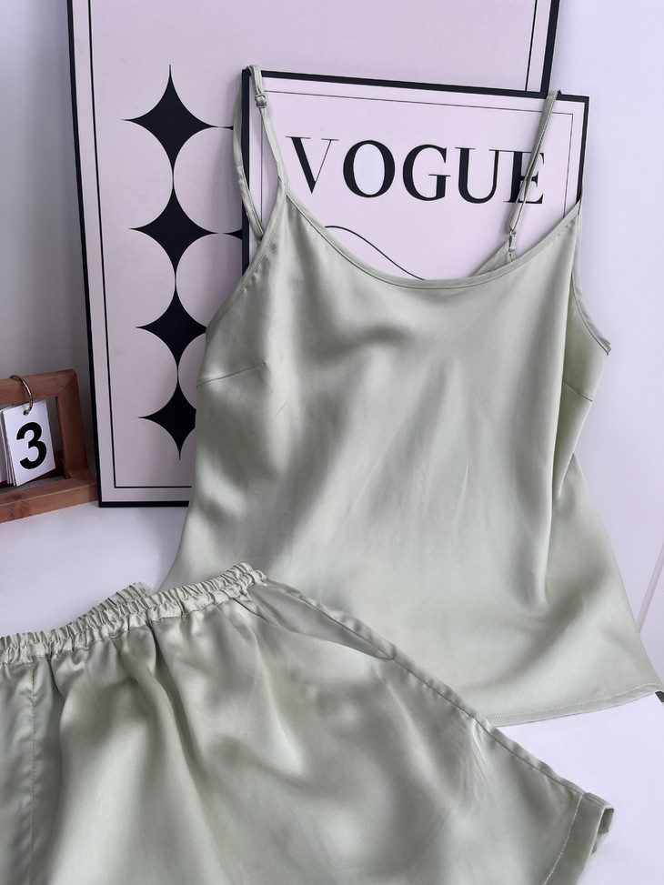 细腻丝滑,珠光质感是一眼便知的贵气!! 穿起来却顺滑细腻,不易起球、勾丝、可机洗!!进口的兰精天丝面料,成本价本就高 再加上人工、包装等一套下来市面上一套都要大几百 本团跟品牌谈判、让利,抢到的今夏爆款 59.9一套卖了!! 吊带+短裤,夏季最舒适的款式