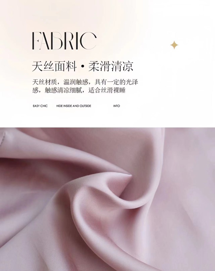 这款天丝吊带套装品质在线 整体细腻顺滑,上身后的亲肤度也是把我们团队的小伙伴征服了!! 柔软+丝滑+吸湿+透气+光泽度 妥妥的夏被面料顶配版~只能说真的敲适合夏天