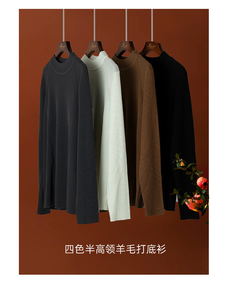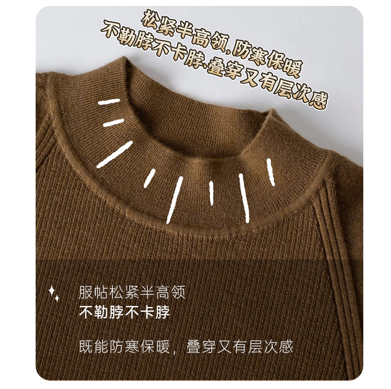 【羊毛打底衫】【半高领】高弹保暖 奢侈品牌同款扬子纱线 半高领舒适轻盈 隐形腰节线遮肉显瘦~