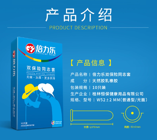 倍力乐 双保险同志套男男用品gay后庭肛专用套 加厚套避孕套另类情趣用品 安全套大油量润滑型 双保险同志套10只装