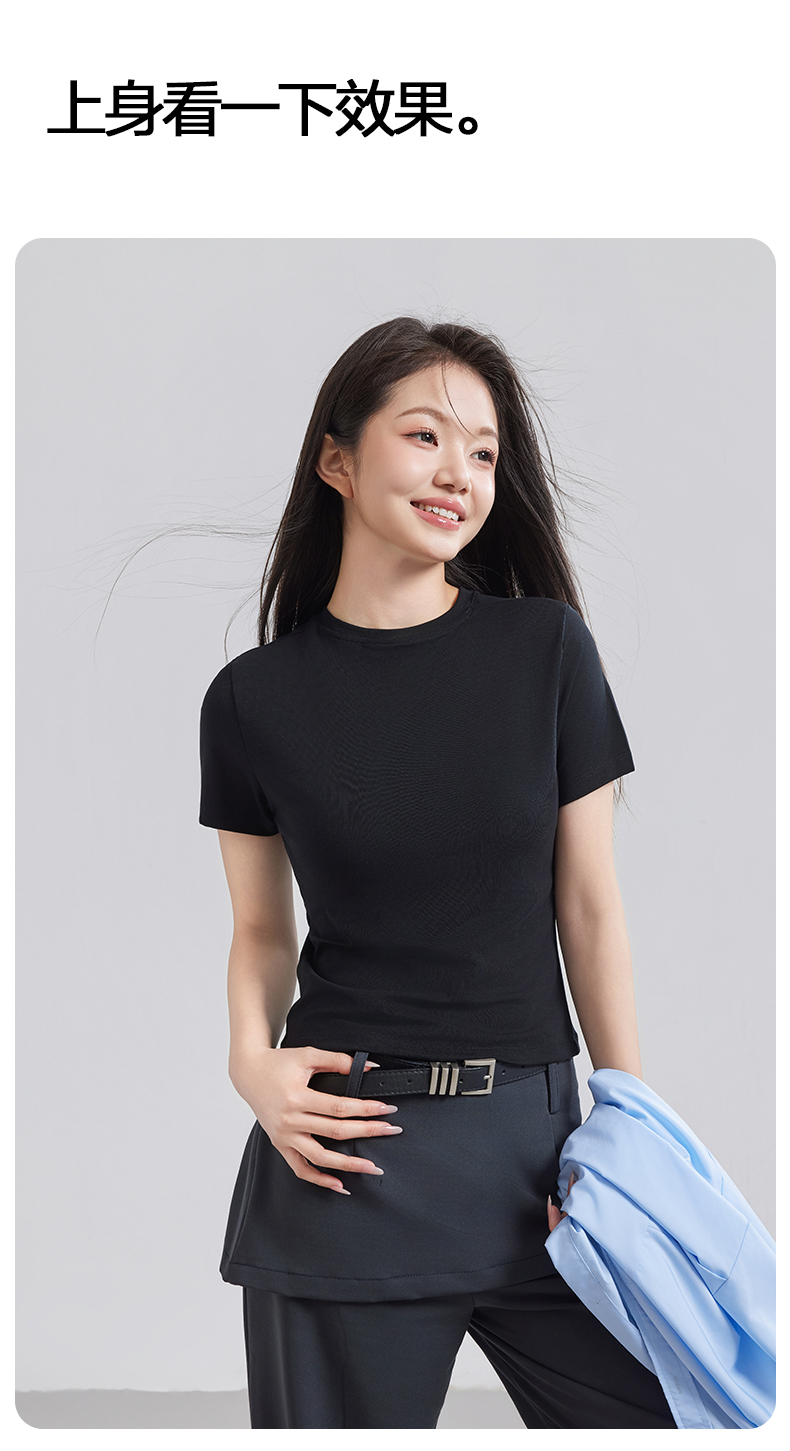 (合作款)天丝圆领正肩宽松T恤yc0309027