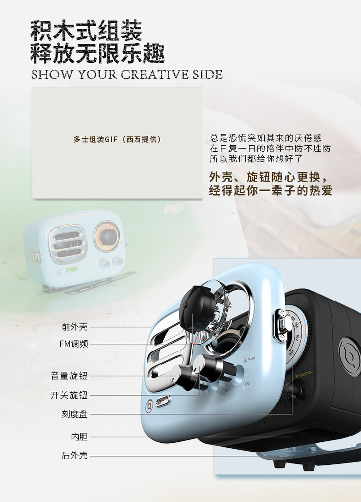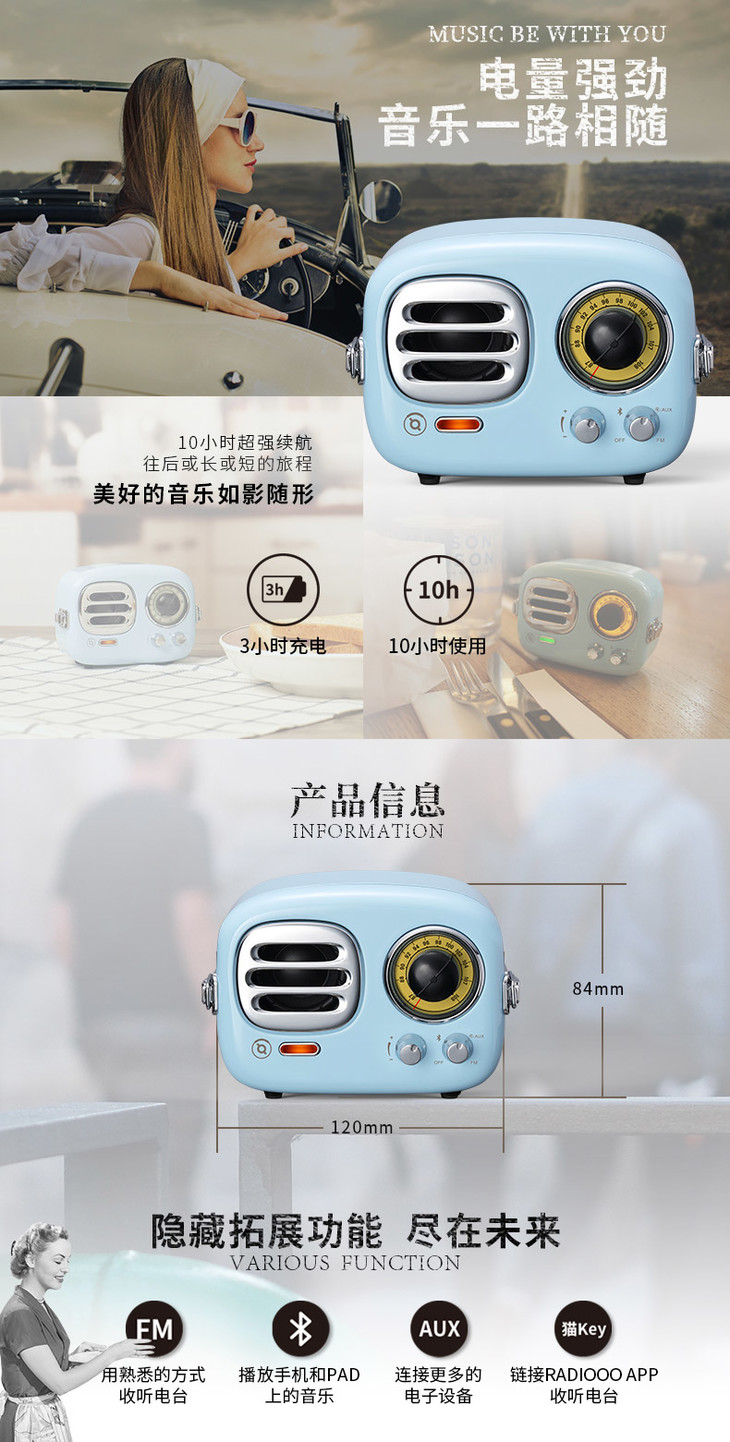 MAO KING TR101BU猫王radiooo多士无线收音机蓝牙音响小音箱迷你