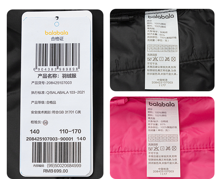 巴拉巴拉balaOne童装女童羽绒服2025年新款保暖外套上衣冬季时尚