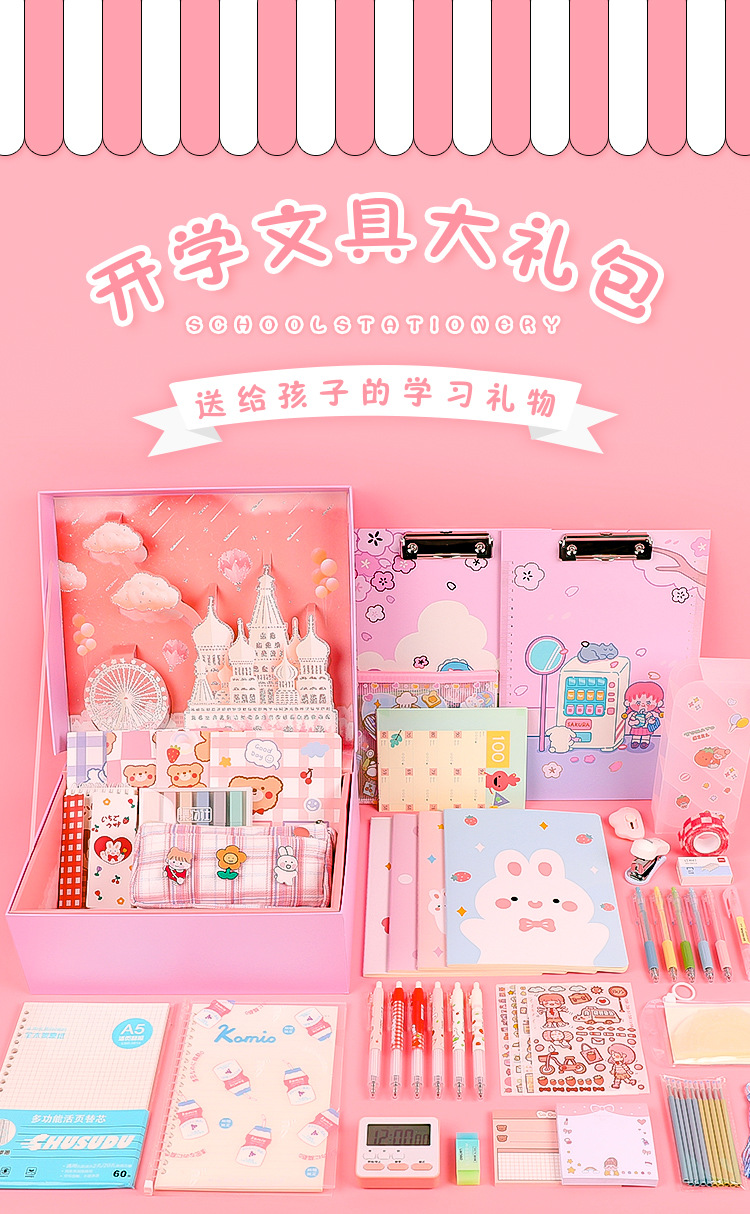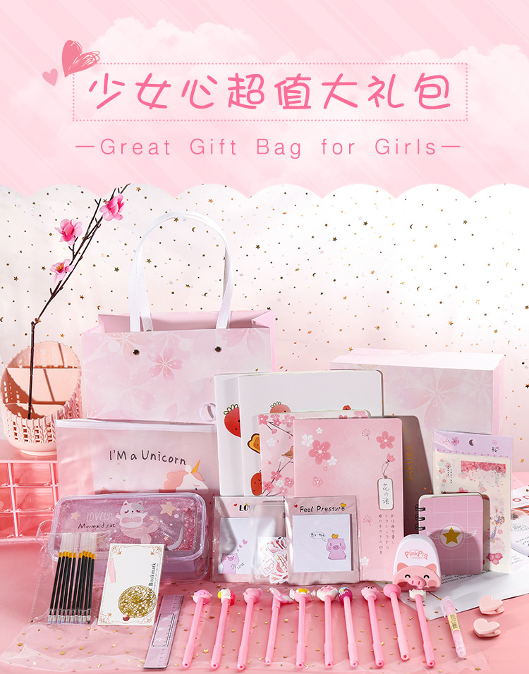 卡通文具套装 少女心手账套装初高中学生学习用品奖品礼品盒子
