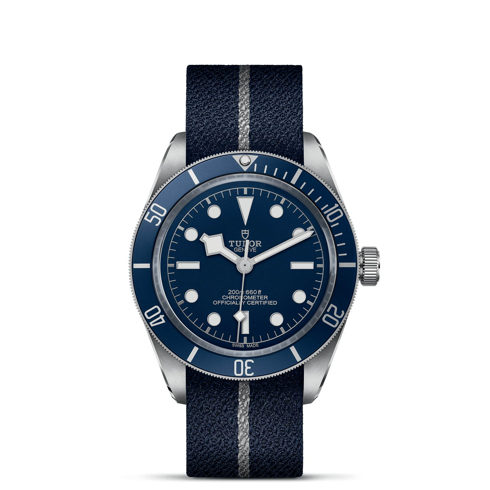 不锈钢单向旋转外圈,哑光蓝色阳极氧化铝60分钟刻度字圈,镀银数字及钟点标记