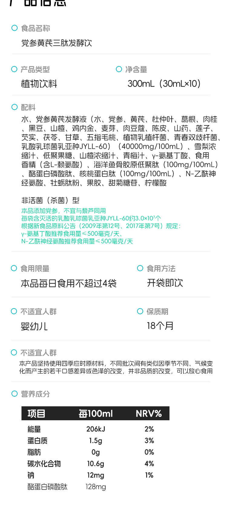 【产品名称】:成长口袋 _党参黄芪三肽发酵饮